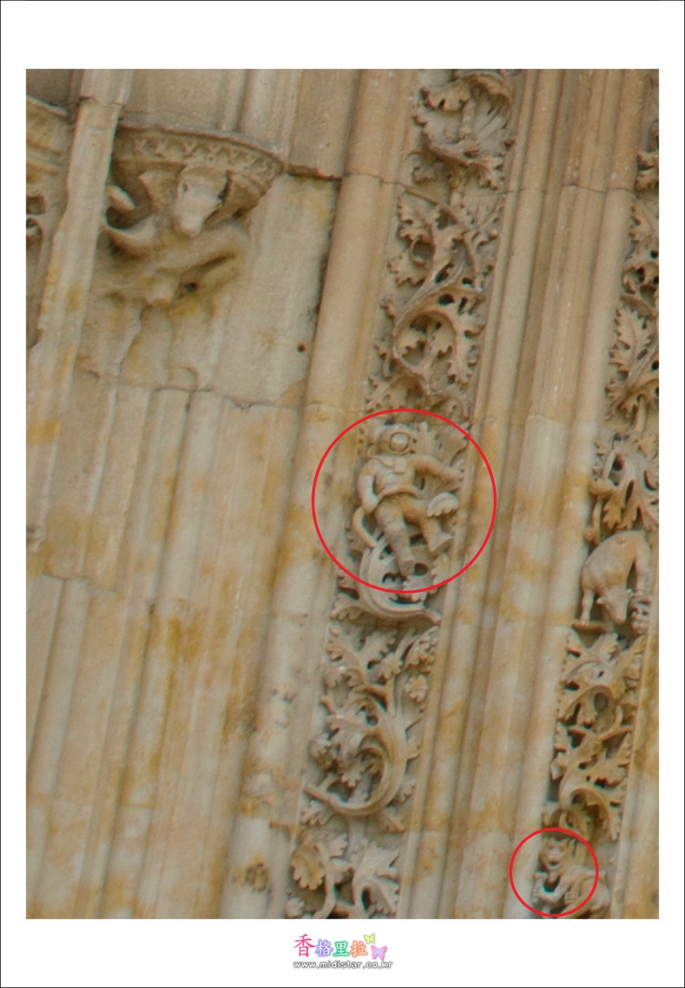 살라망카 대성당 입구 왼쪽벽에 우주복을 입은 사람이 조각되어 있는데 1992년 복원작업을 할 때 석공이 새겨 넣었을 거라는 추측이 있으나 복원작업은 원형을 훼손해서 새롭게 하는 작업이 아닌 만큼 원래부터 있었다고 한다.