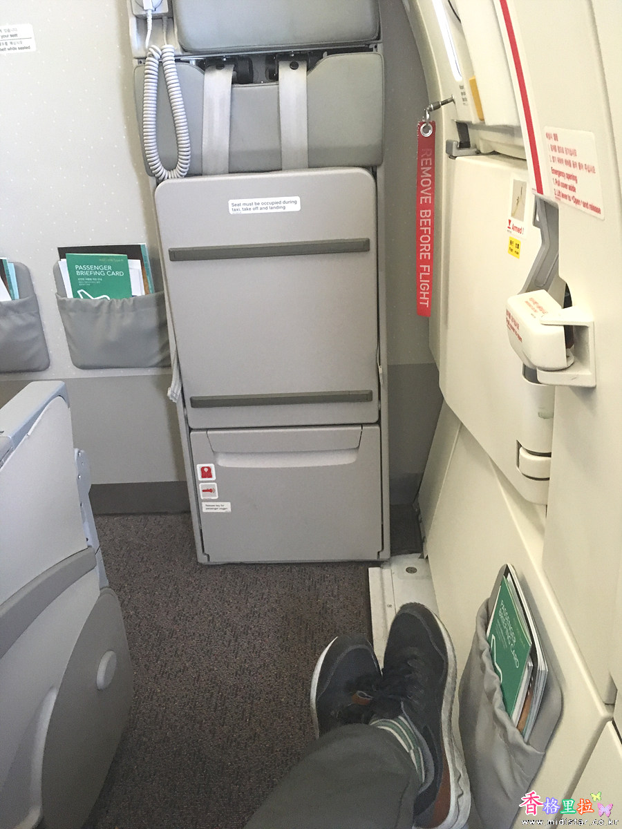 이륙 후 옮긴 옆자리 좌석은 앞에 의자가 없고 앞에는 이착륙 시 승무원이 앉는 좌석이라 발을 쭉 벋을 수 있어서 1시간 40분 정도의 비행이지만 아주 편안했다. 이 자리는 추가로 요금 내고 살만한 좌석이다.