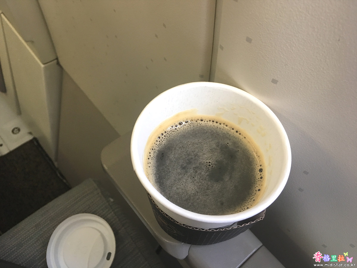 안내 책자에는 4,000원이라고 가격이 쓰여있었는데 세일해서 3,000원짜리 기내 커피를 사 마셔 보았다. 맛은 모르겠고 그냥 여행 기분을 내고 싶어서 마셨다.