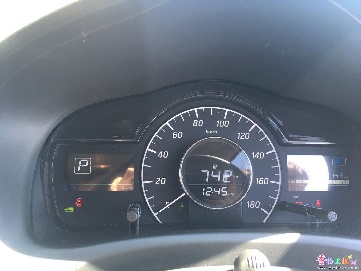 공항 앞 도로에 주차된 렌터카 인수, 차 주위를 한 바퀴 돌며 외관을 점검하니 깨끗하다. 주행거리 5,143 Km 밖에 안 되는 하이브리드 차량이다.