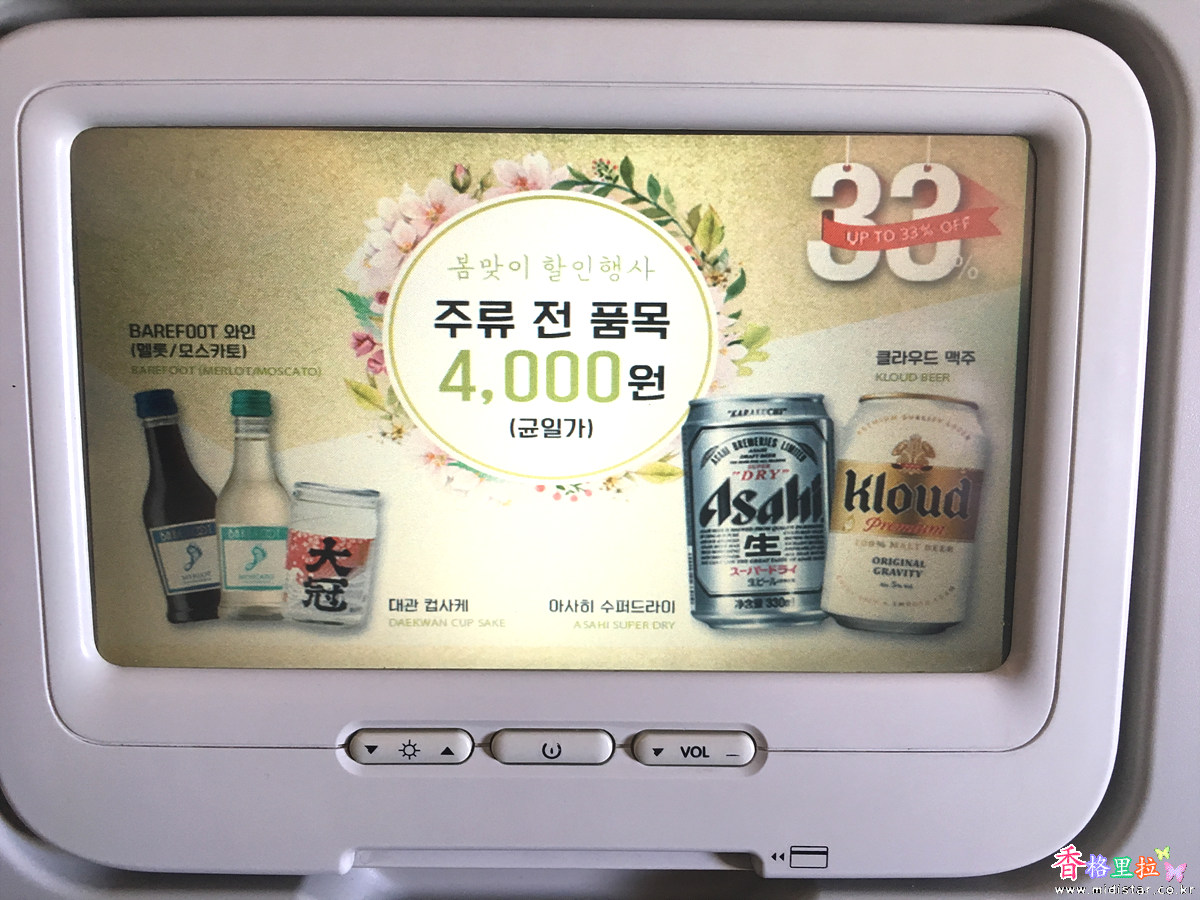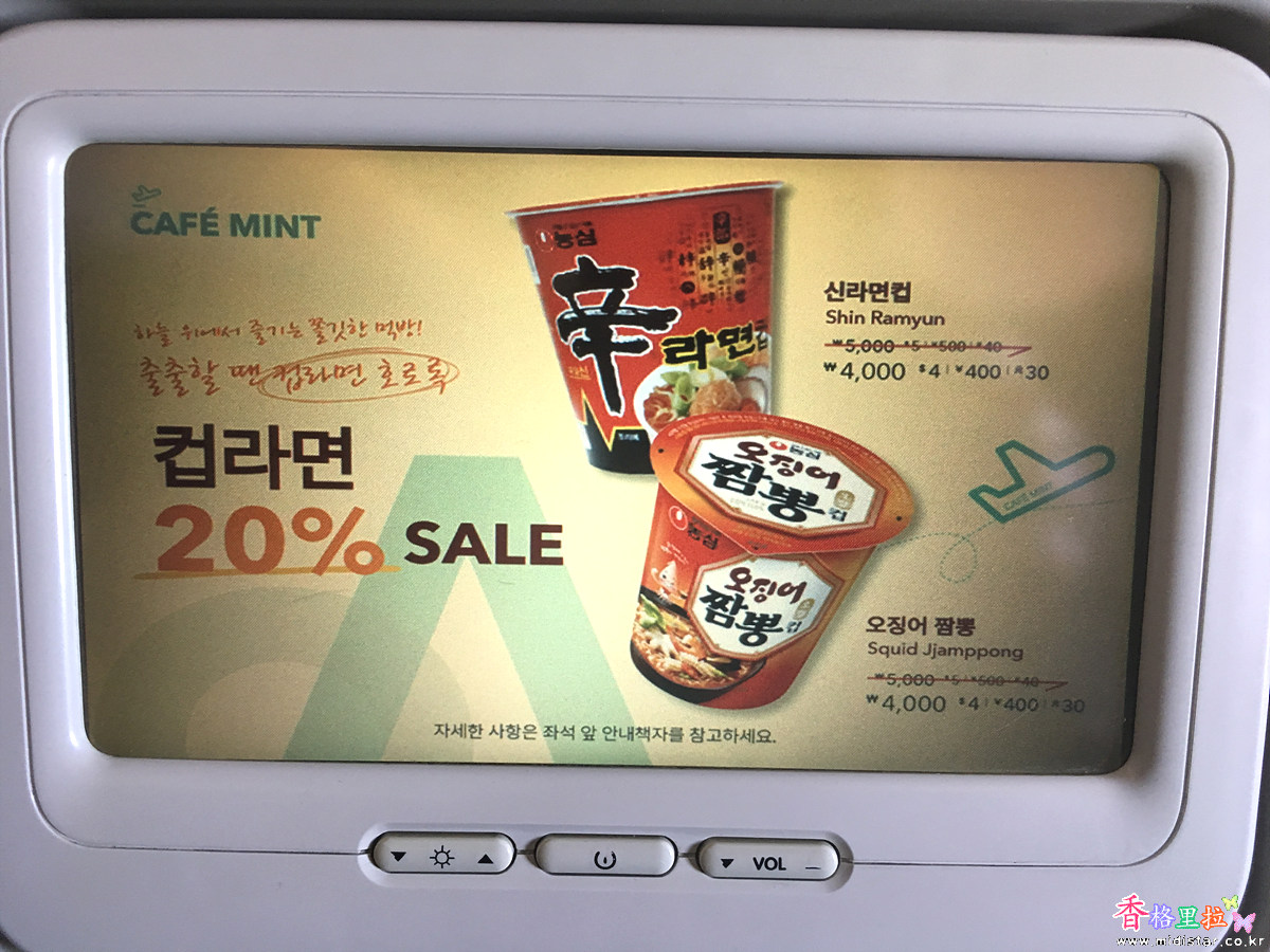 안내 책자에는 4,000원이라고 가격이 쓰여있었는데 세일해서 3,000원짜리 기내 커피를 사 마셔 보았다. 맛은 모르겠고 그냥 여행 기분을 내고 싶어서 마셨다.