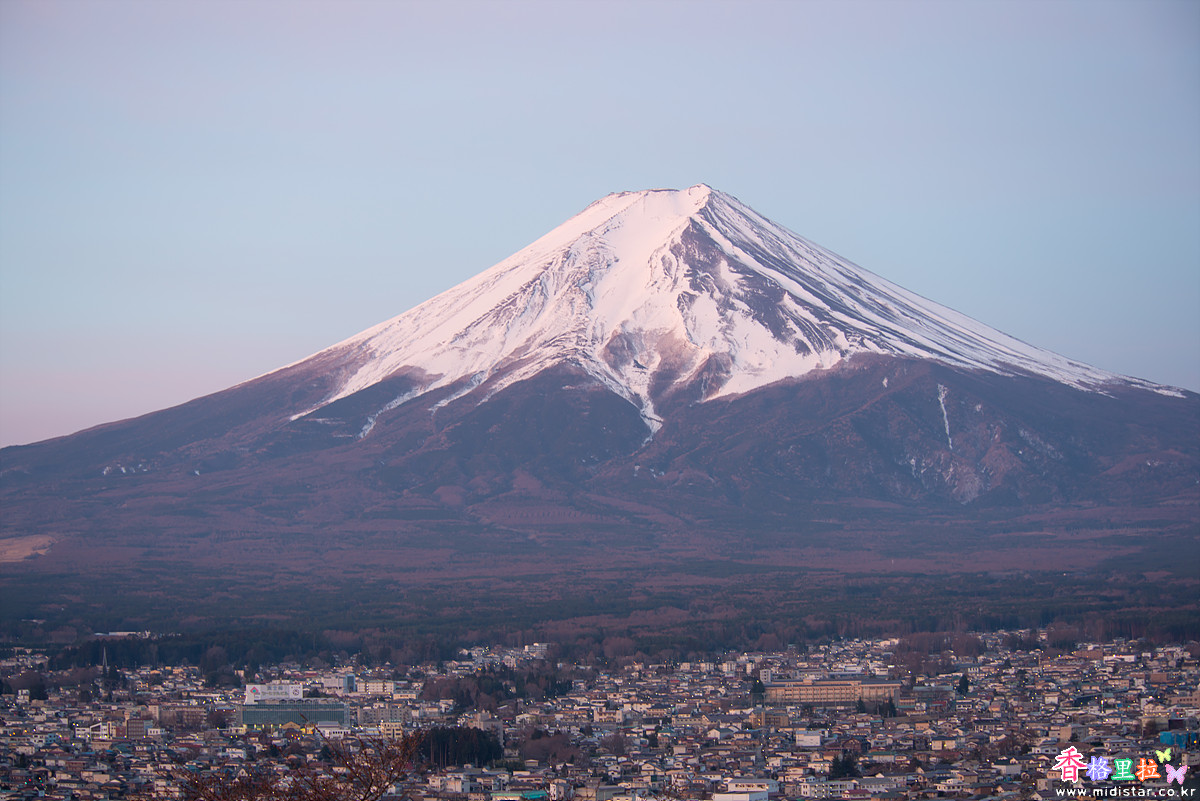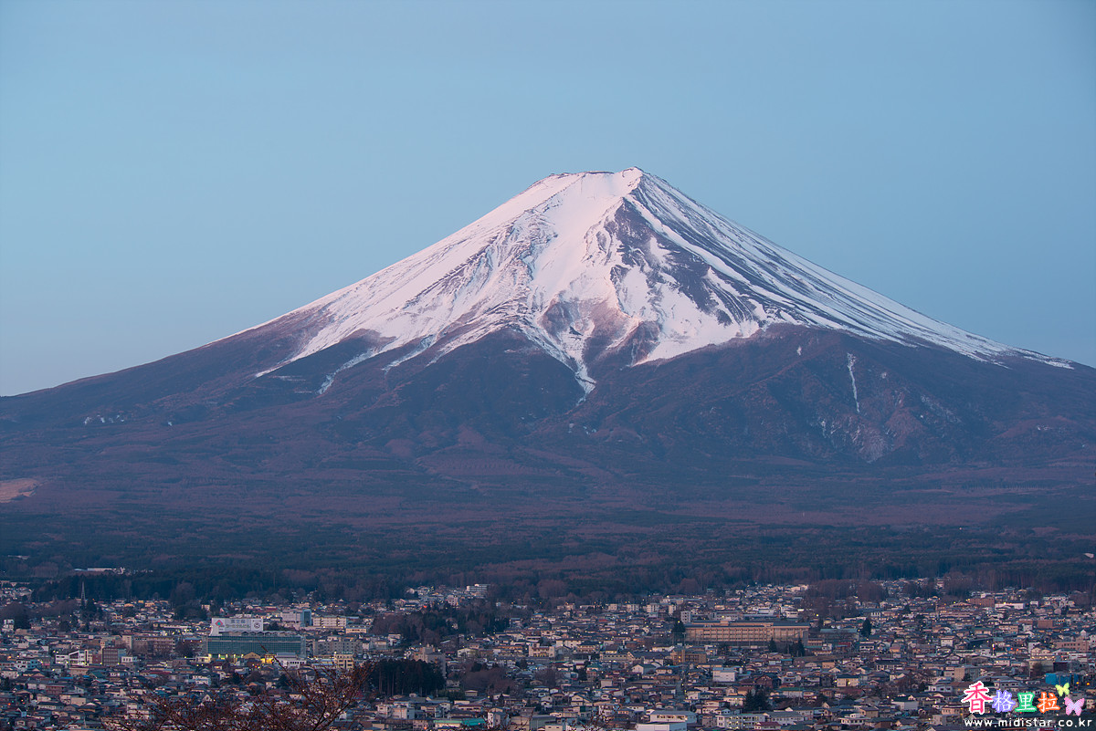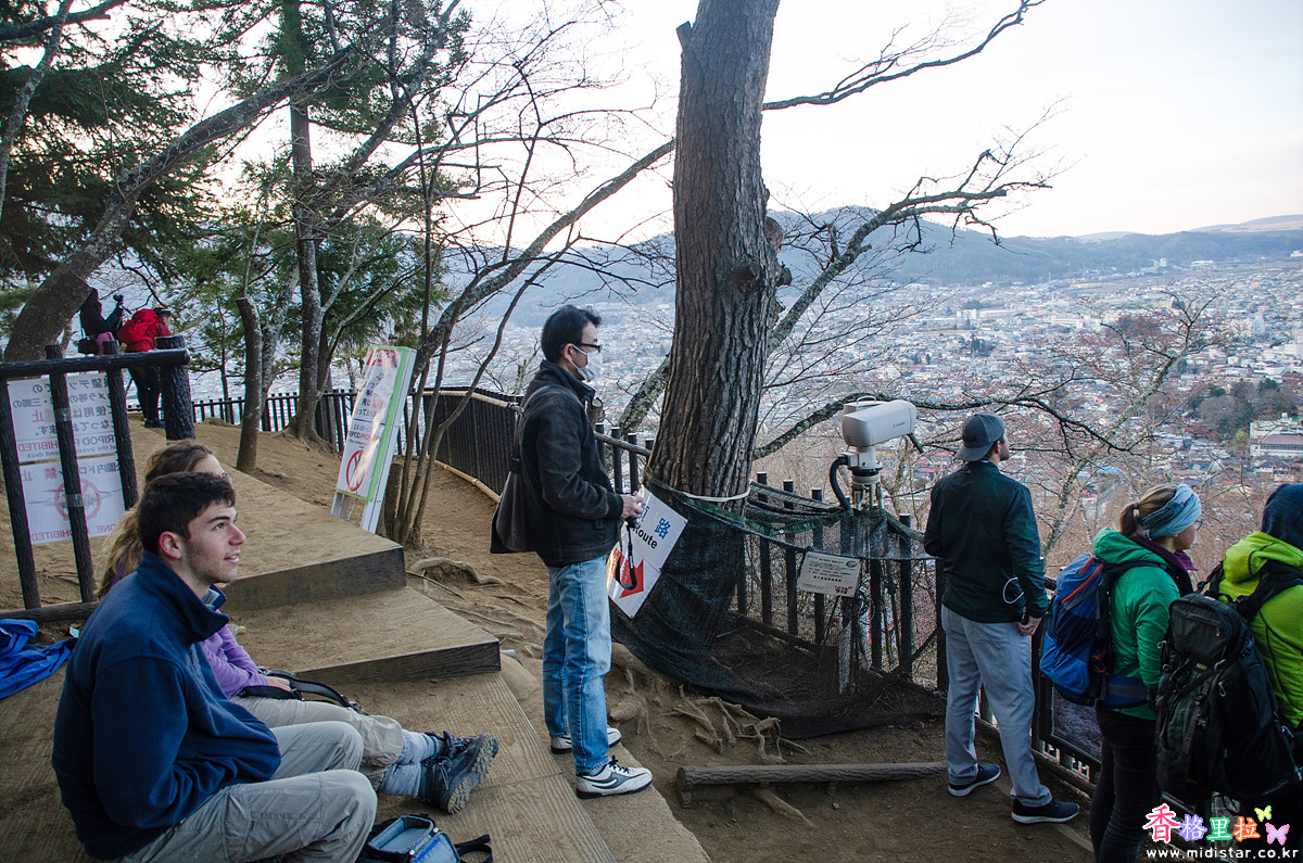 어두운 새벽, 희미한 빛에 의지해 끝없이 이어지는 계단을 올라 츄레이토(忠靈塔) 뒤편 전망대에 자리 잡았다. 사람이 많이 없어 삼각대를 펼쳐놓고 사진을 찍기 시작했다. 삼각대를 사용하지 말라고 주의문이 붙어있지만 새벽 시간이라 사람이 없어 그냥 찍었다.