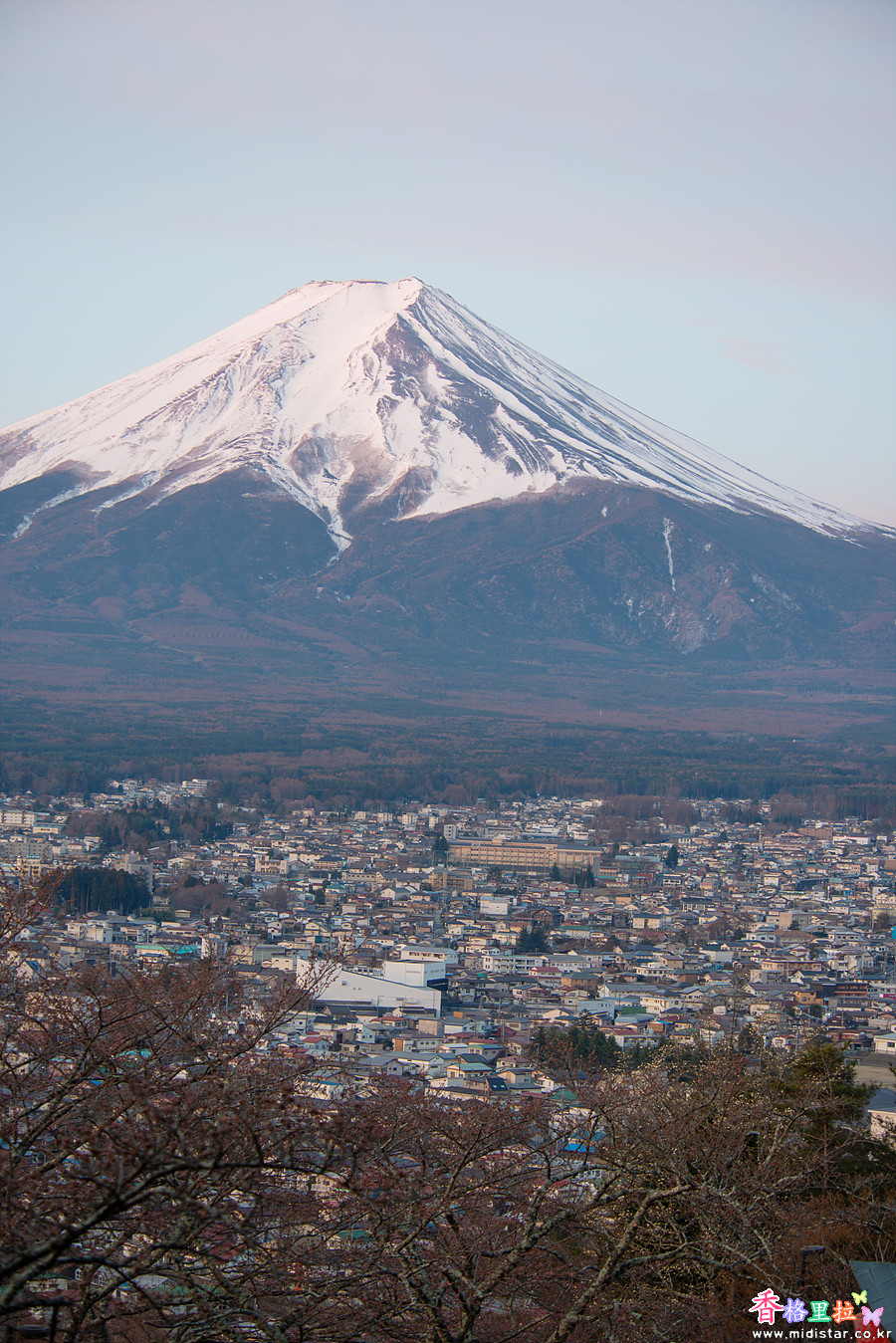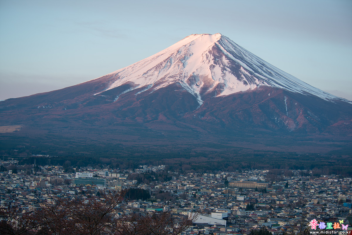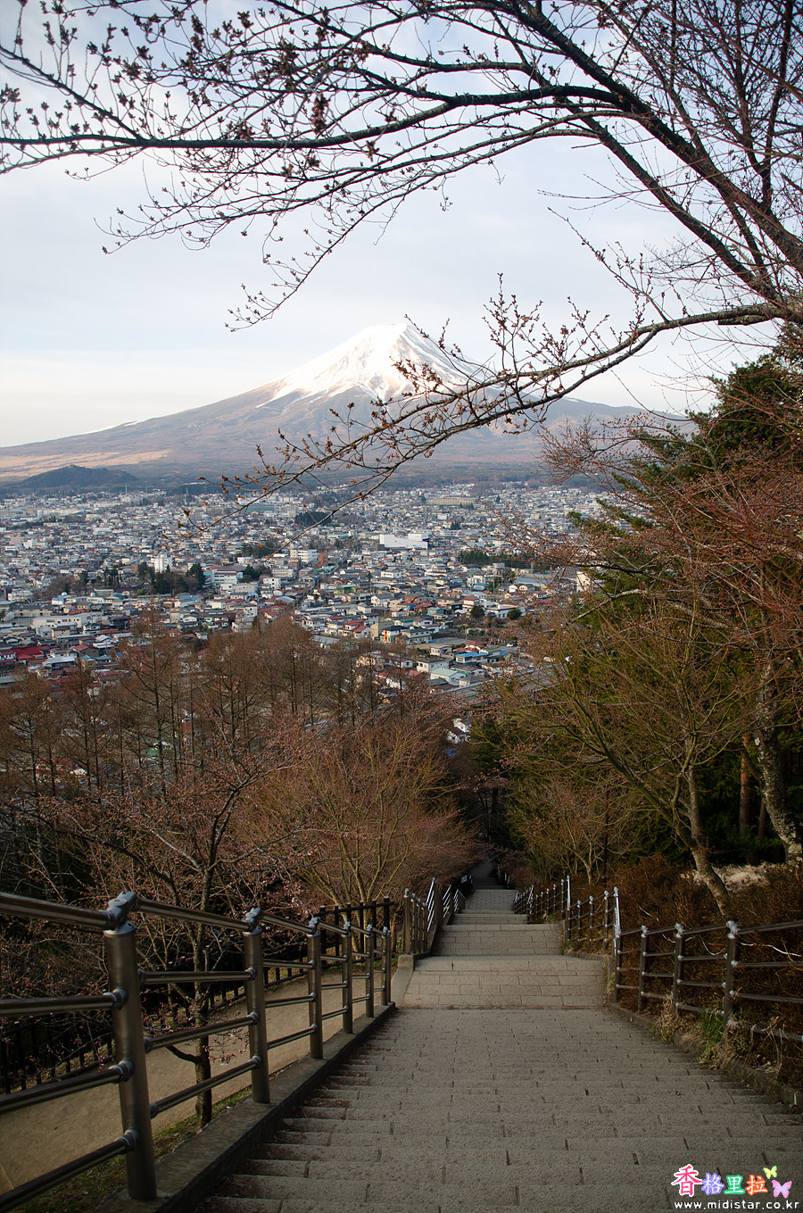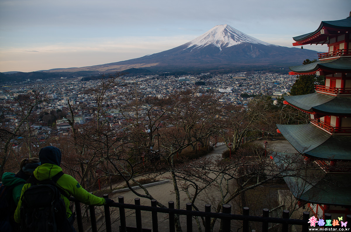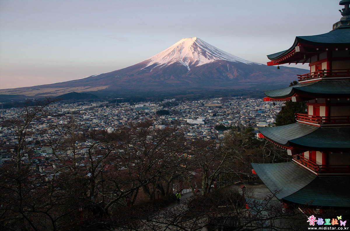 어두운 새벽, 희미한 빛에 의지해 끝없이 이어지는 계단을 올라 츄레이토(忠靈塔) 뒤편 전망대에 자리 잡았다. 사람이 많이 없어 삼각대를 펼쳐놓고 사진을 찍기 시작했다. 삼각대를 사용하지 말라고 주의문이 붙어있지만 새벽 시간이라 사람이 없어 그냥 찍었다.