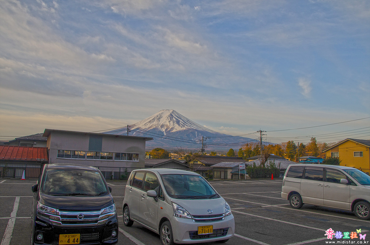 주차장에서 후지산이 보인다.