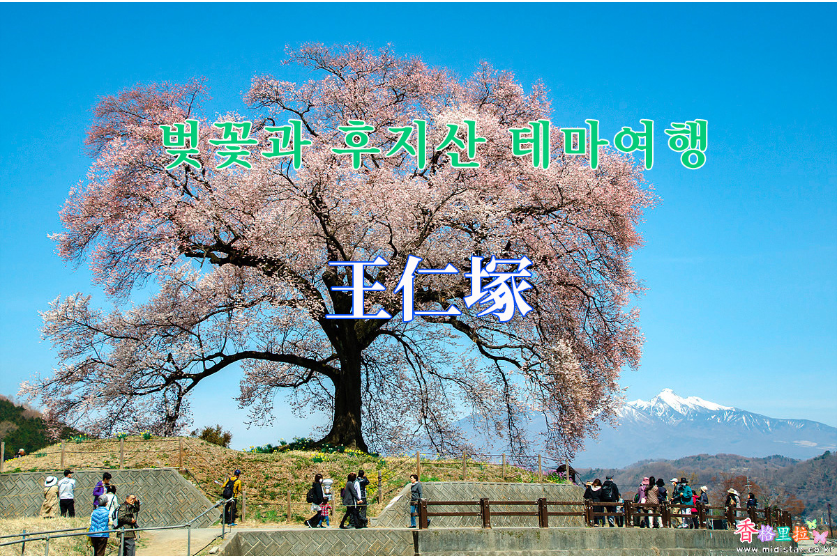 ▲와니추가(王仁塚) 벚꽃과 후지산
