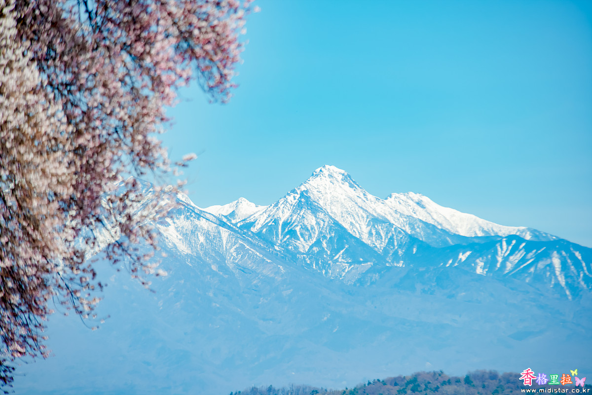 저 멀리 일본의 남 알프스라 불리는 설산이 보인다.