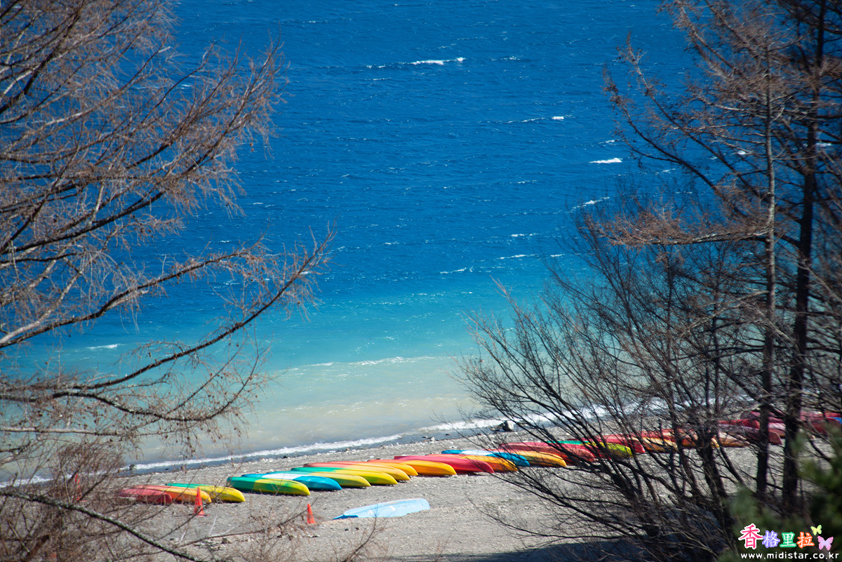 호수 깊이가 얕은 곳은 물색이 또 다른데 바다에서나 볼 수 있는 코발트 빛 물색이다.