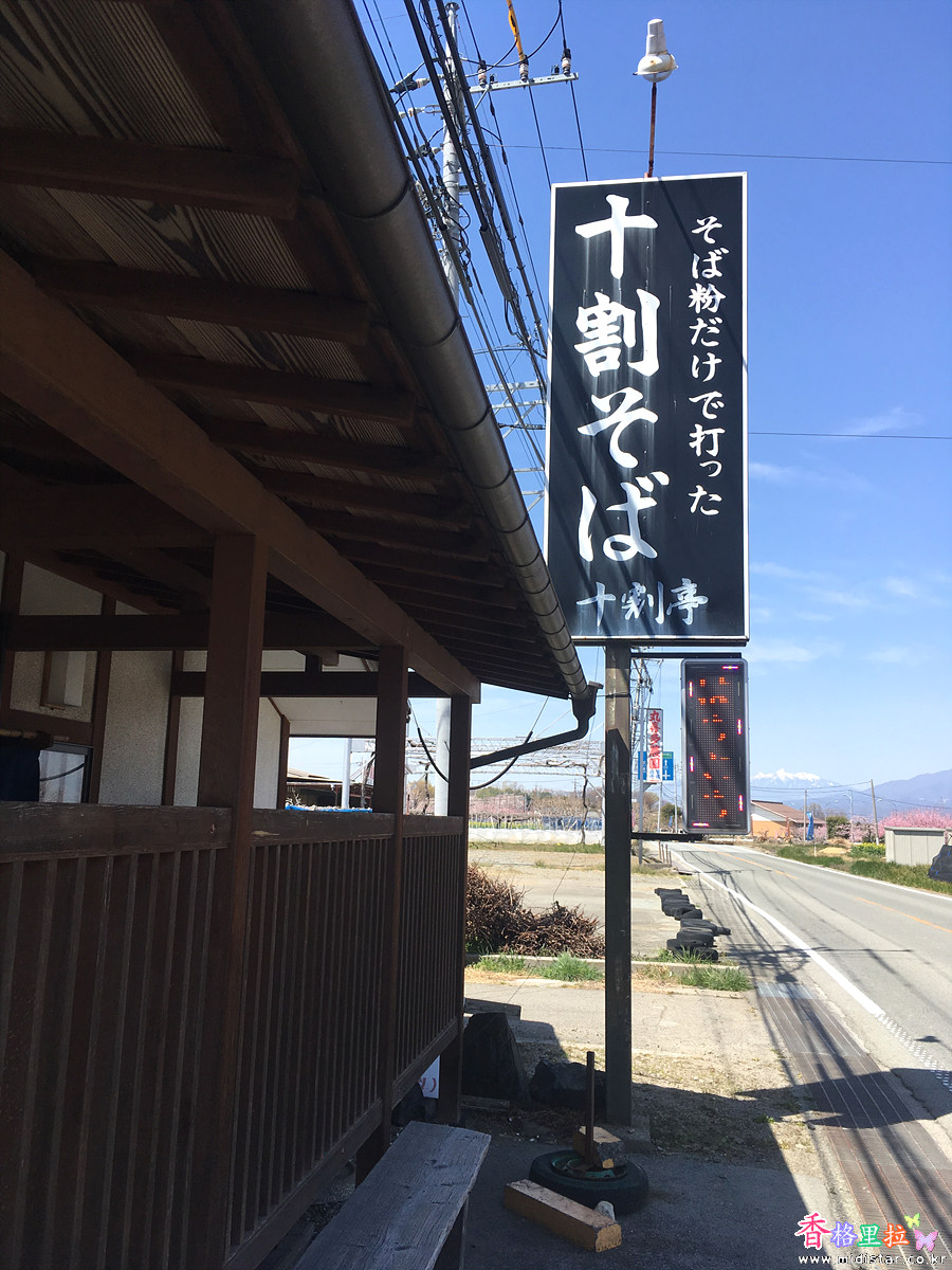そば粉だけて打つた (메밀가루만으로 찧었다) 라고 100% 메밀만 사용했다고 강조한 간판이 눈에 뛴다.