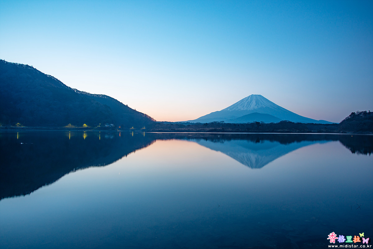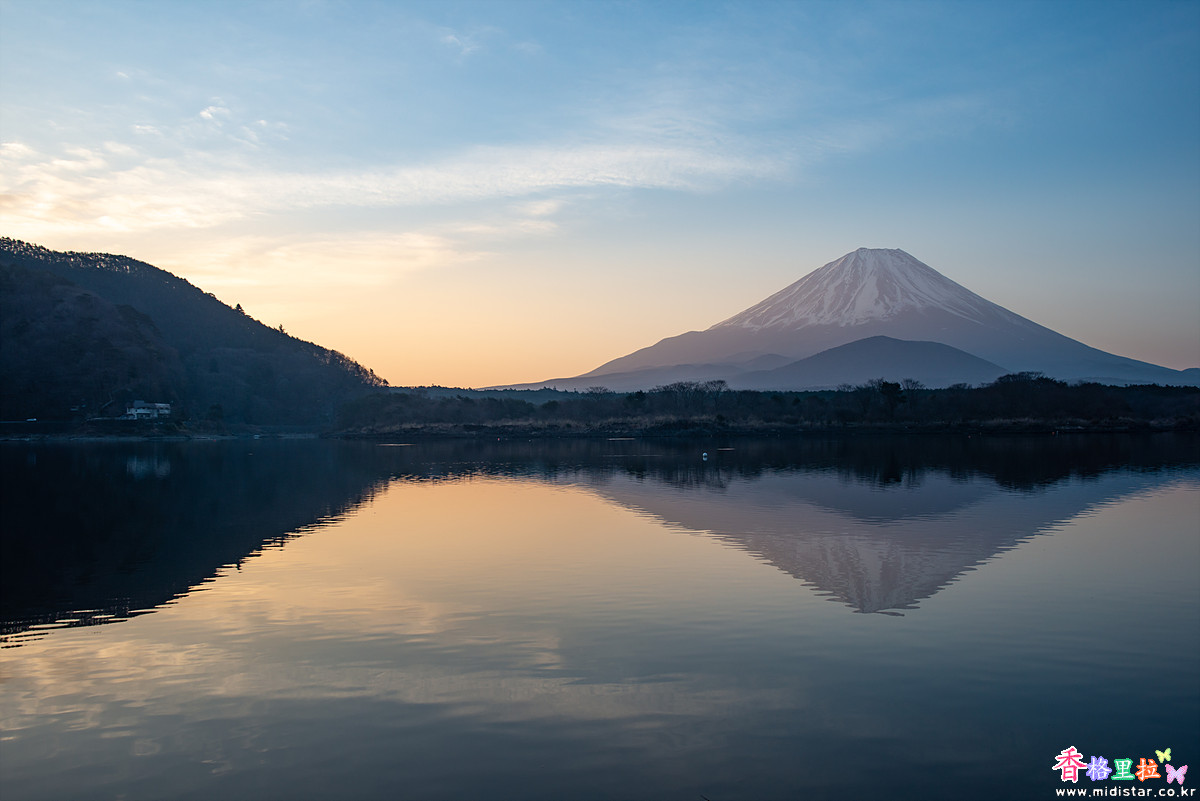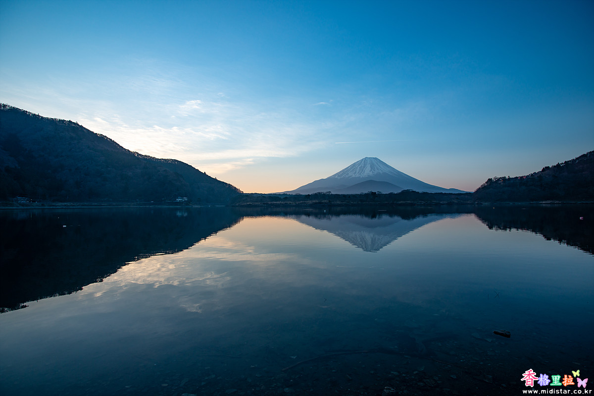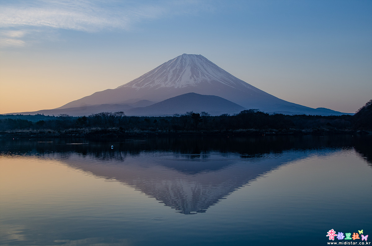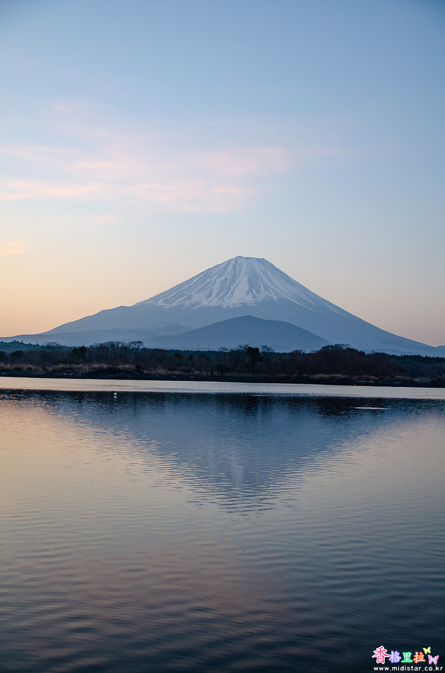 바람이 멈춘순간, 후지산(富士山)의 반영이 제대로 나왔다.