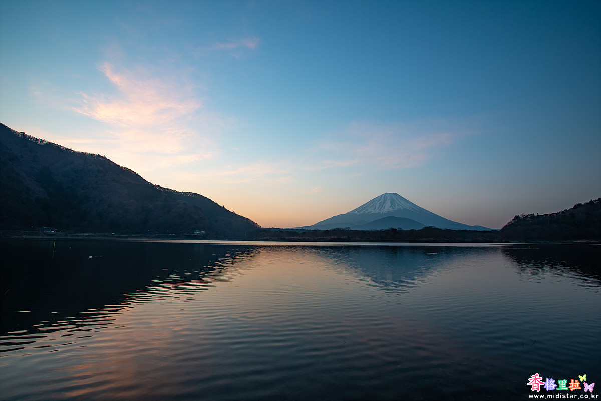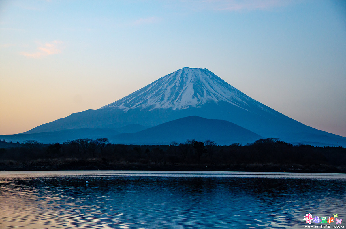 봄이라 그런지 기대한 만큼 강렬한 아침 붉은 기가 후지산(富士山)을 붉게 물들이지 못한다.