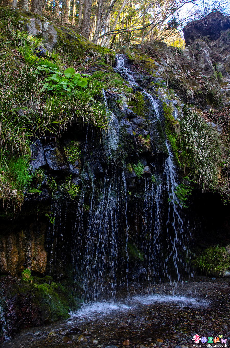 폭포를 알리는 팻말을 따라 걷다 보니 도로 마을로 내려와 아까 마을 앞에 있던 주차장에서 바로 들어가면 되는 곳에 진바노다끼(陣馬の滝)가 있었다.