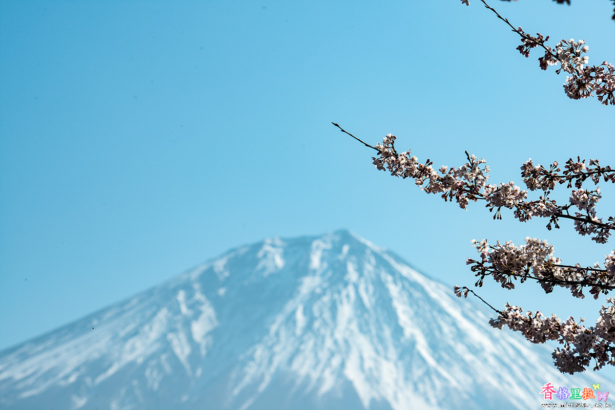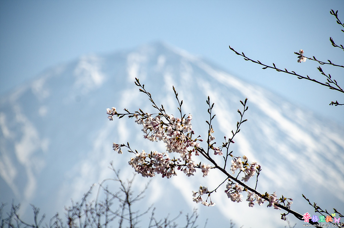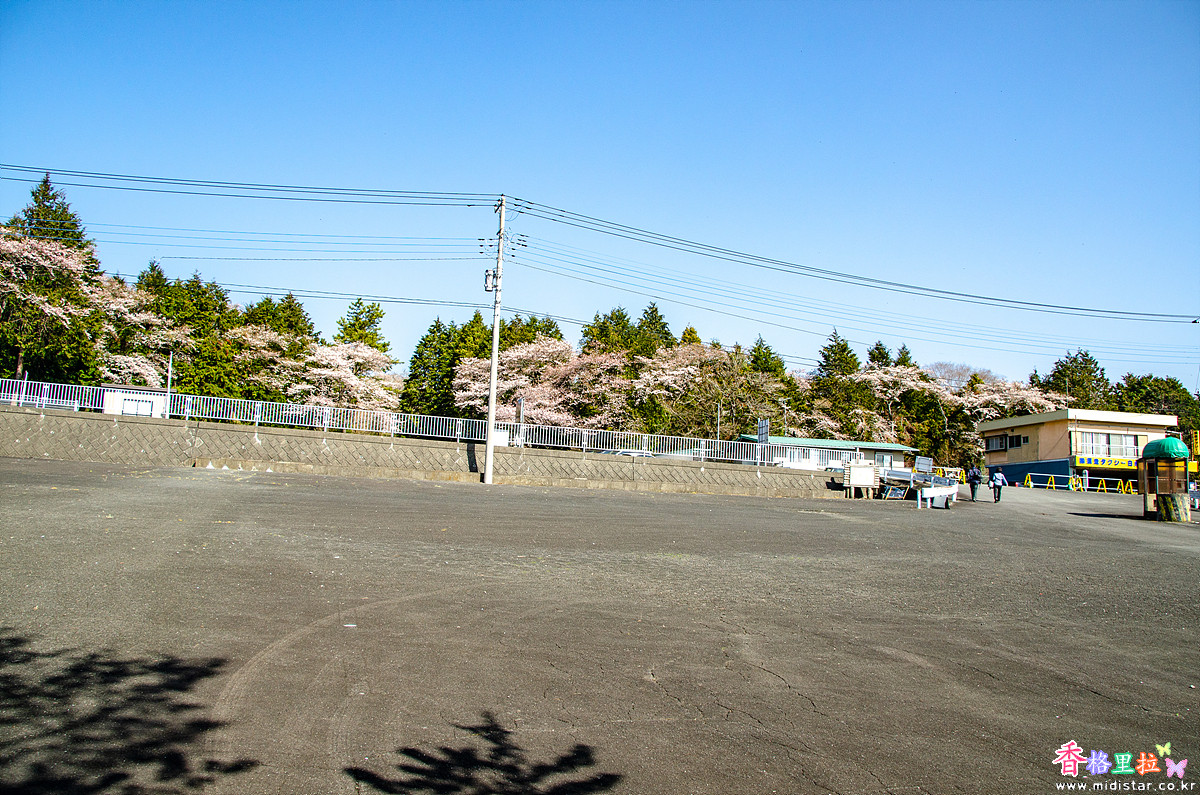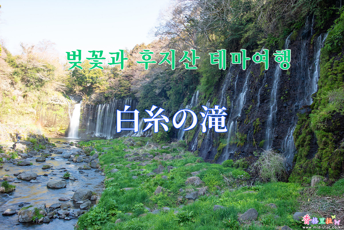 ▲시라이토노다끼(白糸の滝) 주차장 벚꽃과 후지산(富士山)