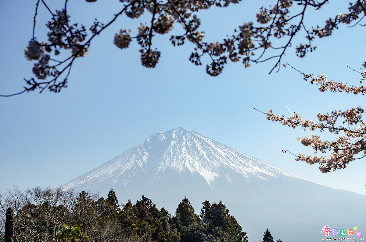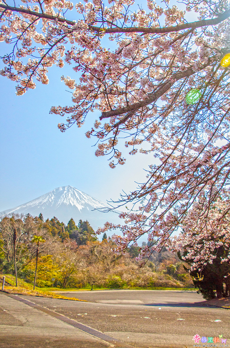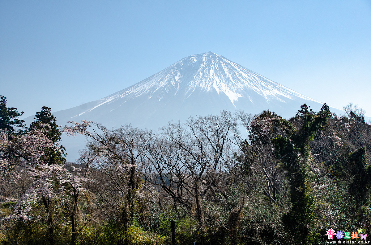 ▲시라이토노다끼(白糸の滝) 주차장 벚꽃과 후지산(富士山)