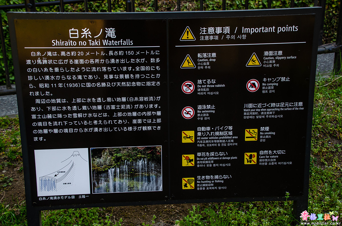 계단을 따라 내려가니 말 그대로 흰실의 폭포(白糸の滝)가 눈앞에 펼쳐졌다. 폭포에서 물방울이 제법 날라와서 보슬비 정도는 되는 것 같다.