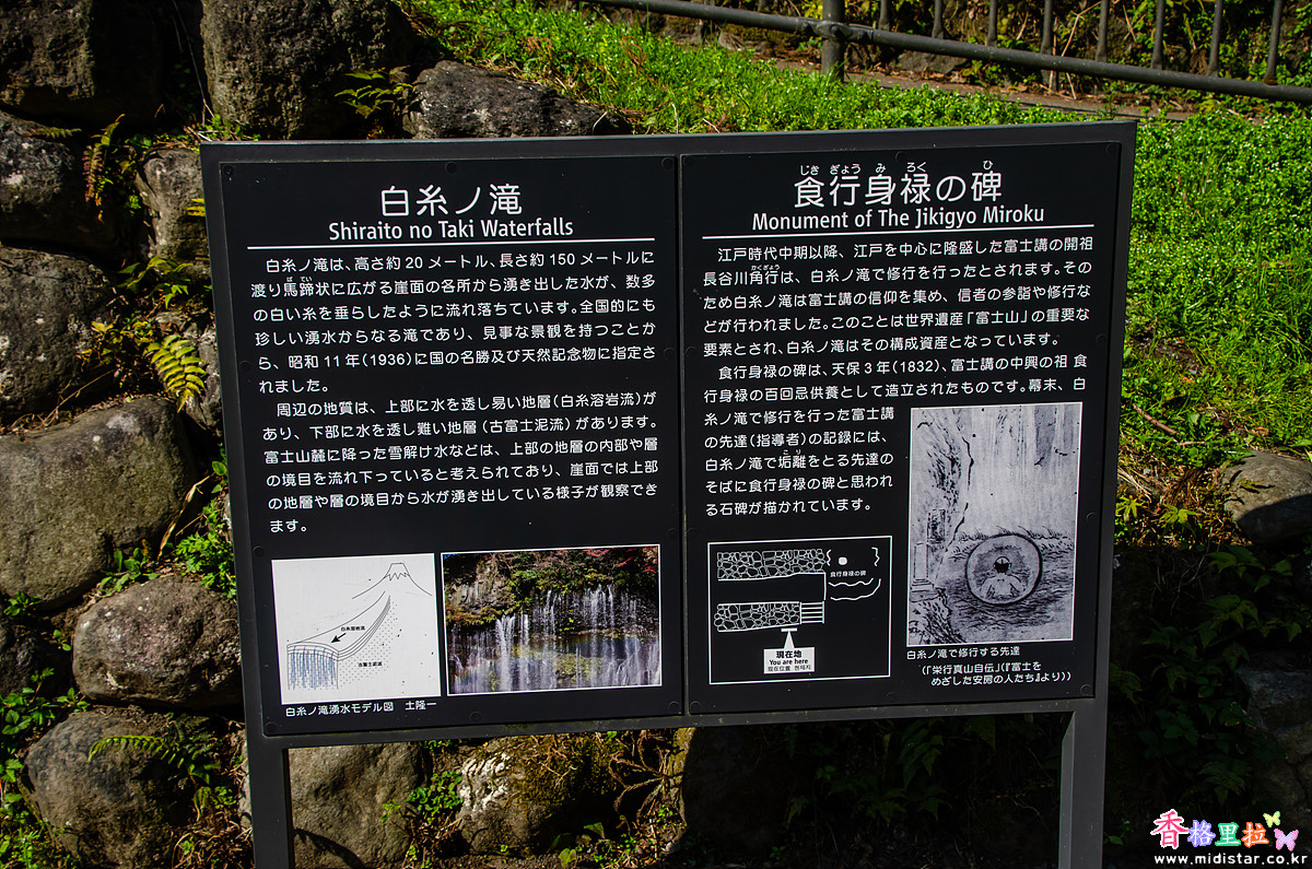 시라이토노다끼(白糸の滝)도 높은 산에 있는 것이 아니라 그냥 평지에 있는 폭포이다. 한국에서처럼 폭포는 높은 산위에 있다는 고정관념을 버려야 할 것 같다.