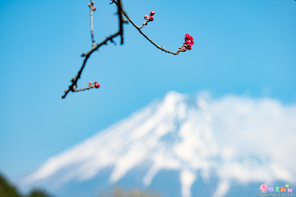 카리야도노시모우마사쿠라(狩宿の下馬桜)를 떠나 길을 달리다가 파란 하늘을 배경으로 후지산에 구름이 살짝 걸려있는 멋진 풍경을 보고 차를 세워 후지산을 한 장 찍었다.