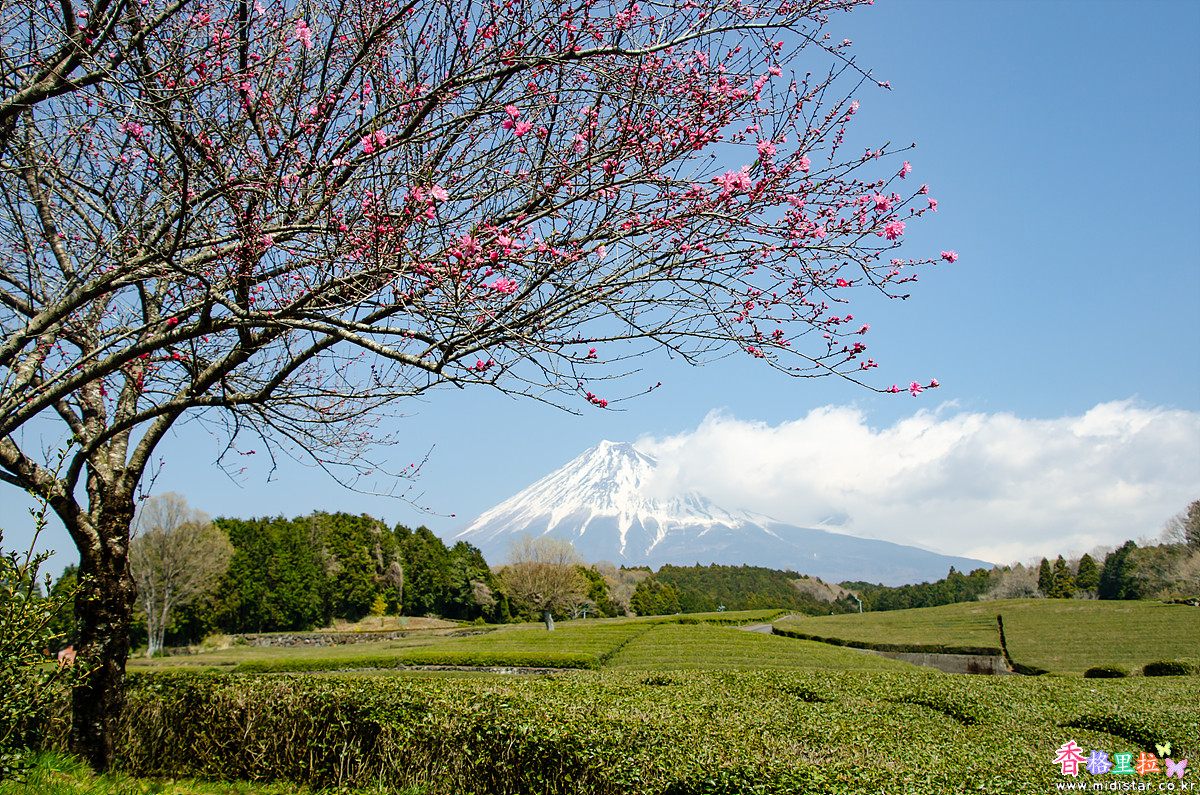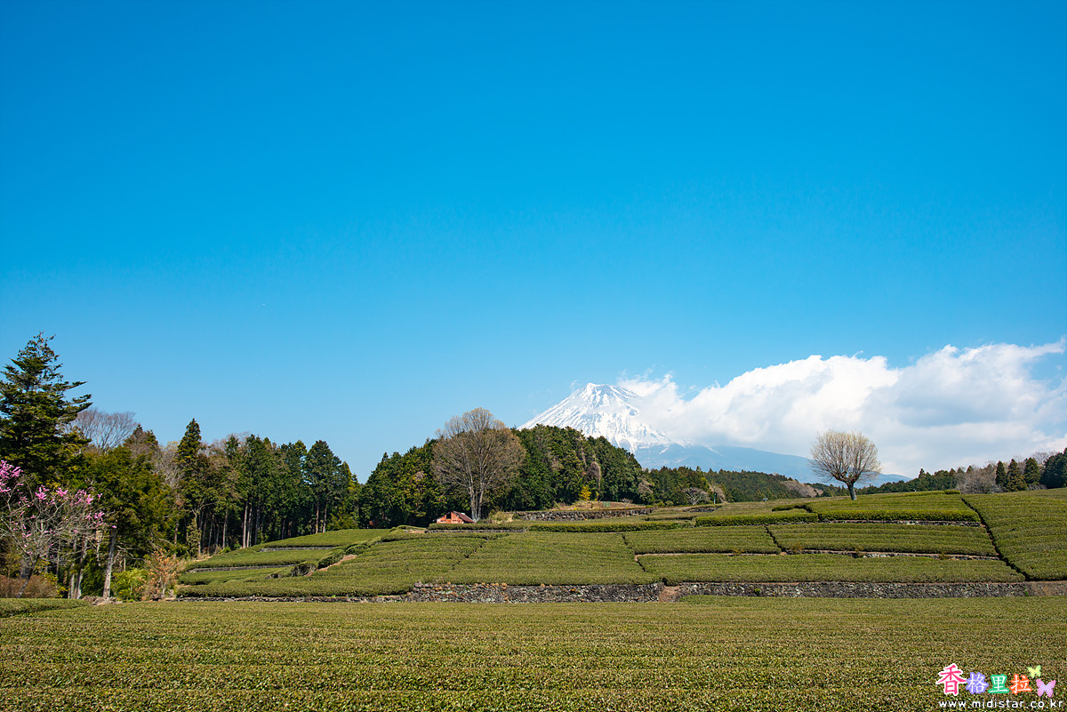 ▲오부치 사사바(大淵笹場) 녹차밭 벚꽃과 후지산(富士山)