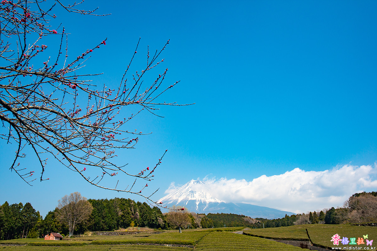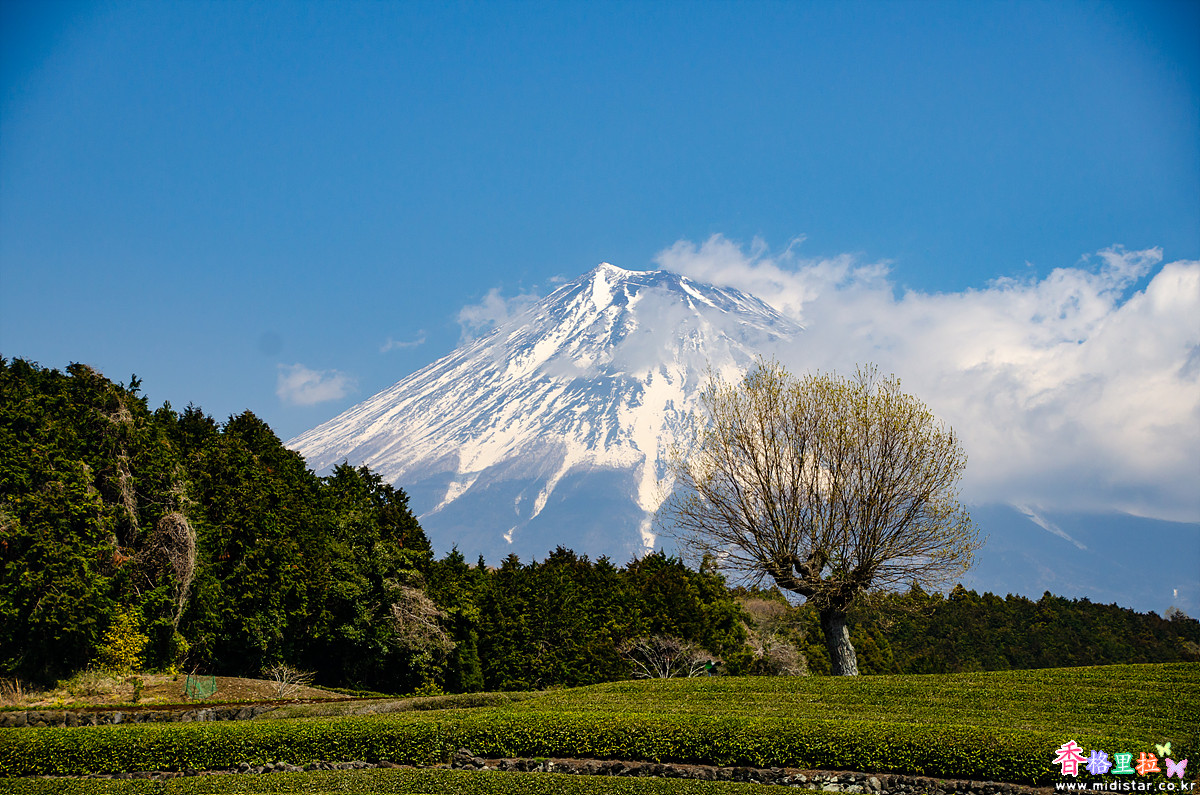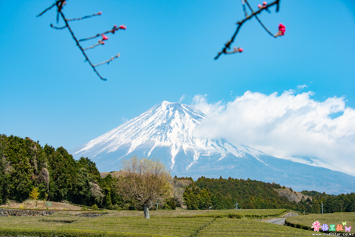 ▲오부치 사사바(大淵笹場) 녹차밭 벚꽃과 후지산(富士山)