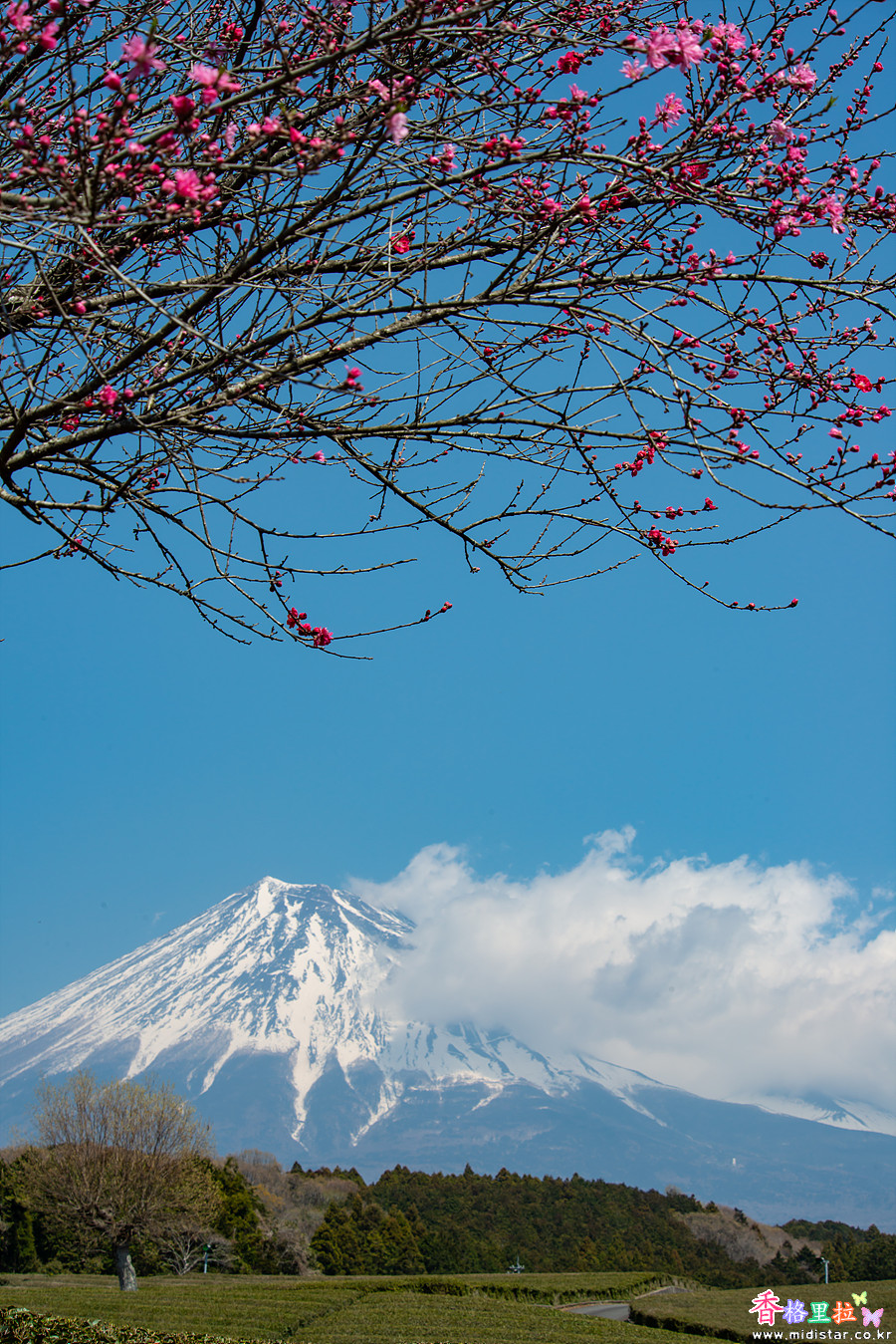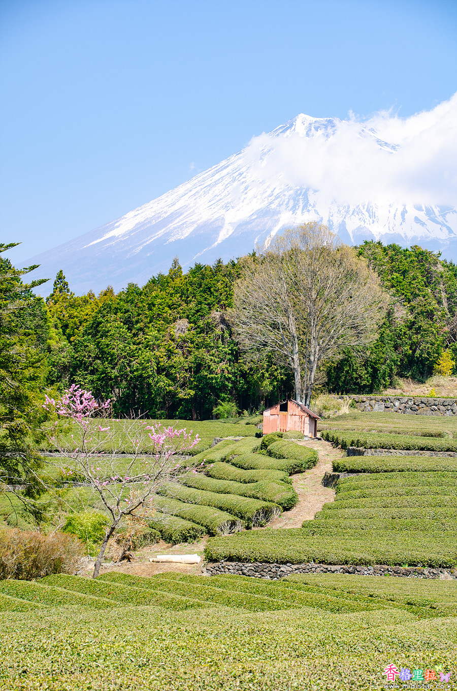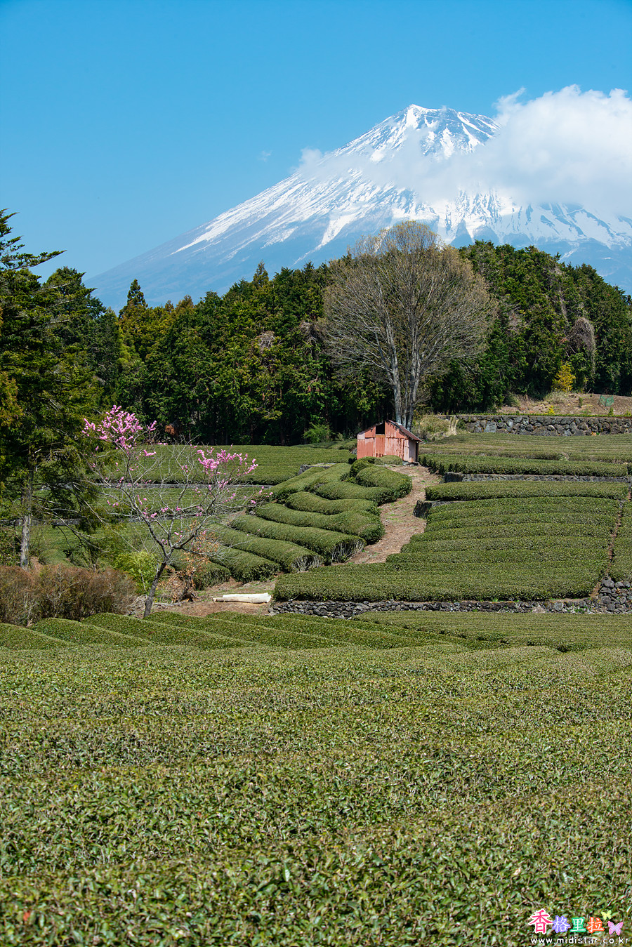 ▲오부치 사사바(大淵笹場) 녹차밭 벚꽃과 후지산(富士山)
