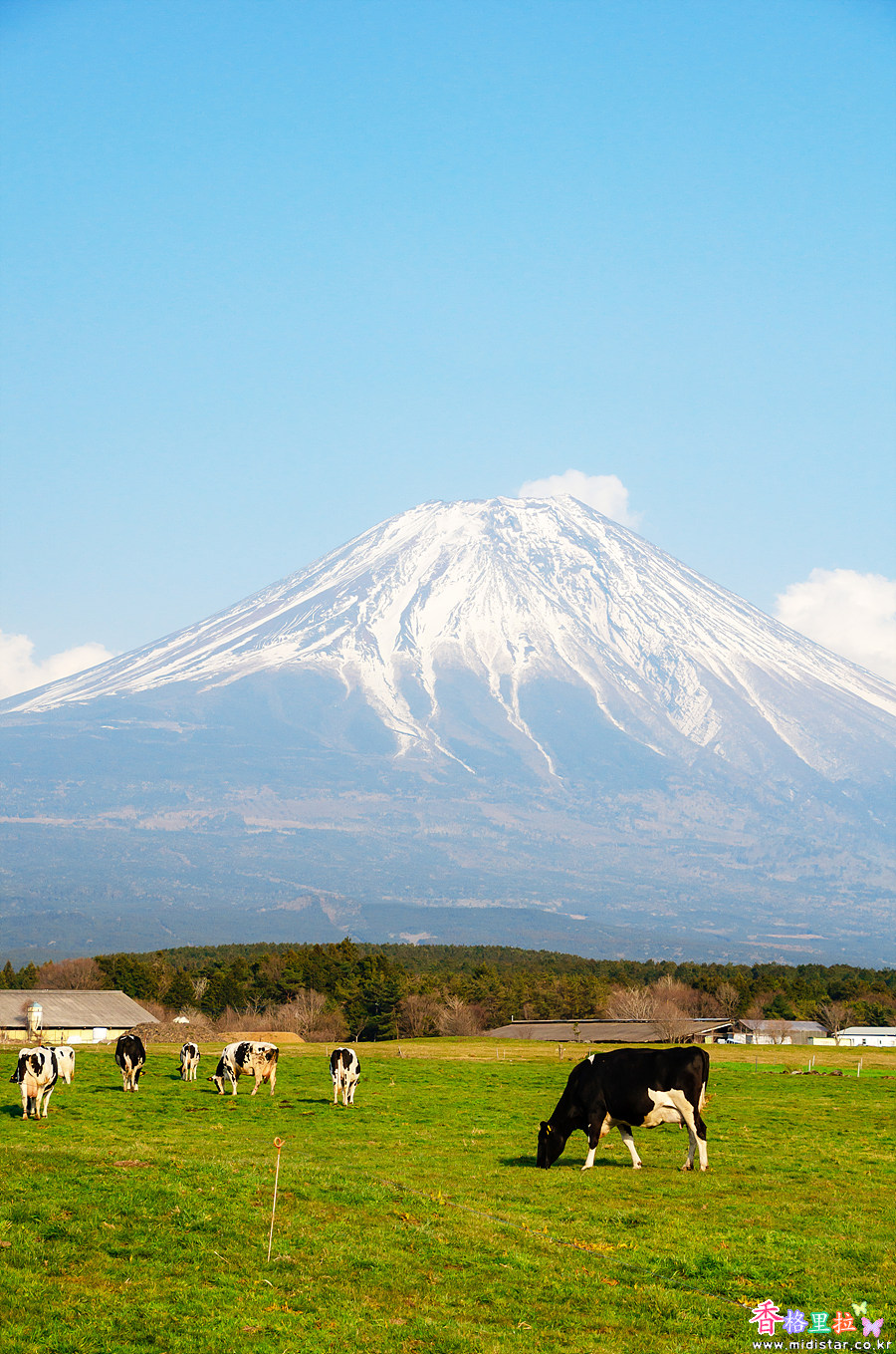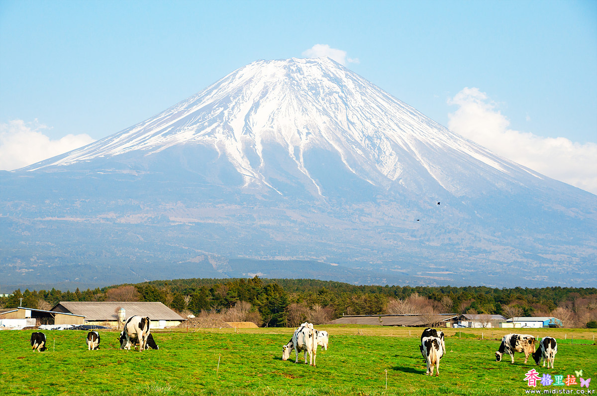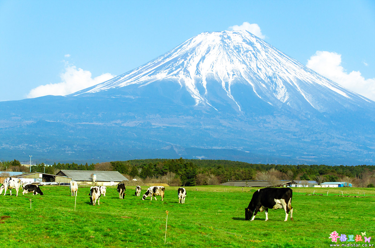 ▲아사기리 고원(朝霧高原) 젖소목장 과 후지산(富士山)