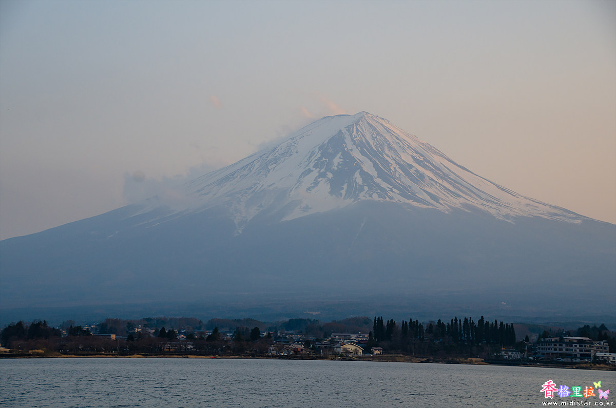 기대했던 후지산(富士山) 정상에 쌓인 흰눈에 저녁 노을 핑크빛이 물든 모습을 기대했으나 오늘도 그저 그런 모습만 보여준다.