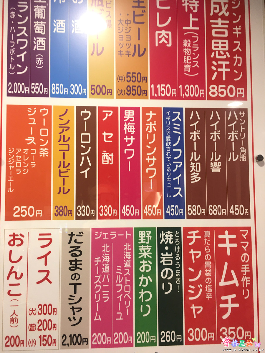 ▲징기스칸 양고기 전문점 - 다루마 메뉴