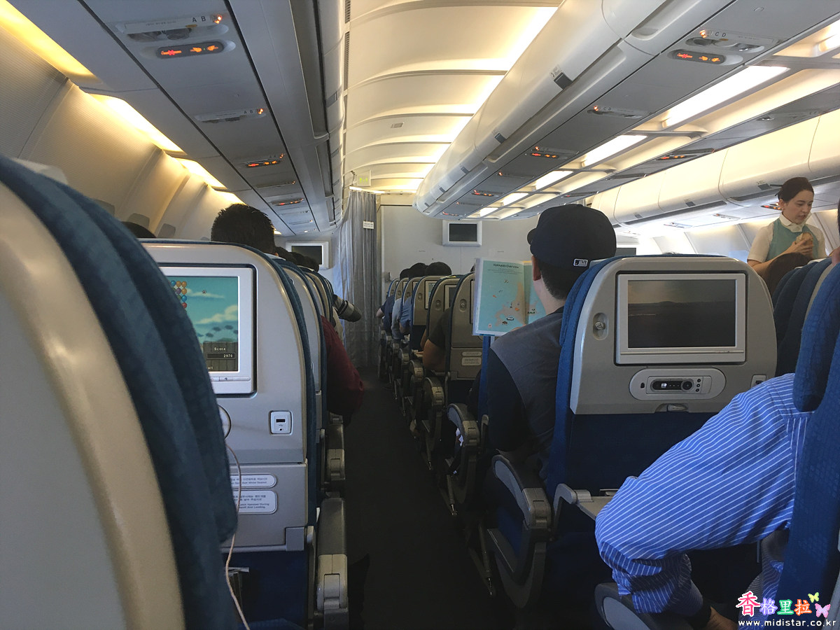 A330 기종으로 2-4-2 좌석 배열인데 중간 중간 빈 자리가 있었다. 이때쯤이면 홋카이도(北海道)행 한국관광객이 많아서 비행기 좌석이 만석일텐데 빈 좌석이 있다는 것은 그 만큼 일본행 관광객이 줄었다는 것을 알 수 있었다.