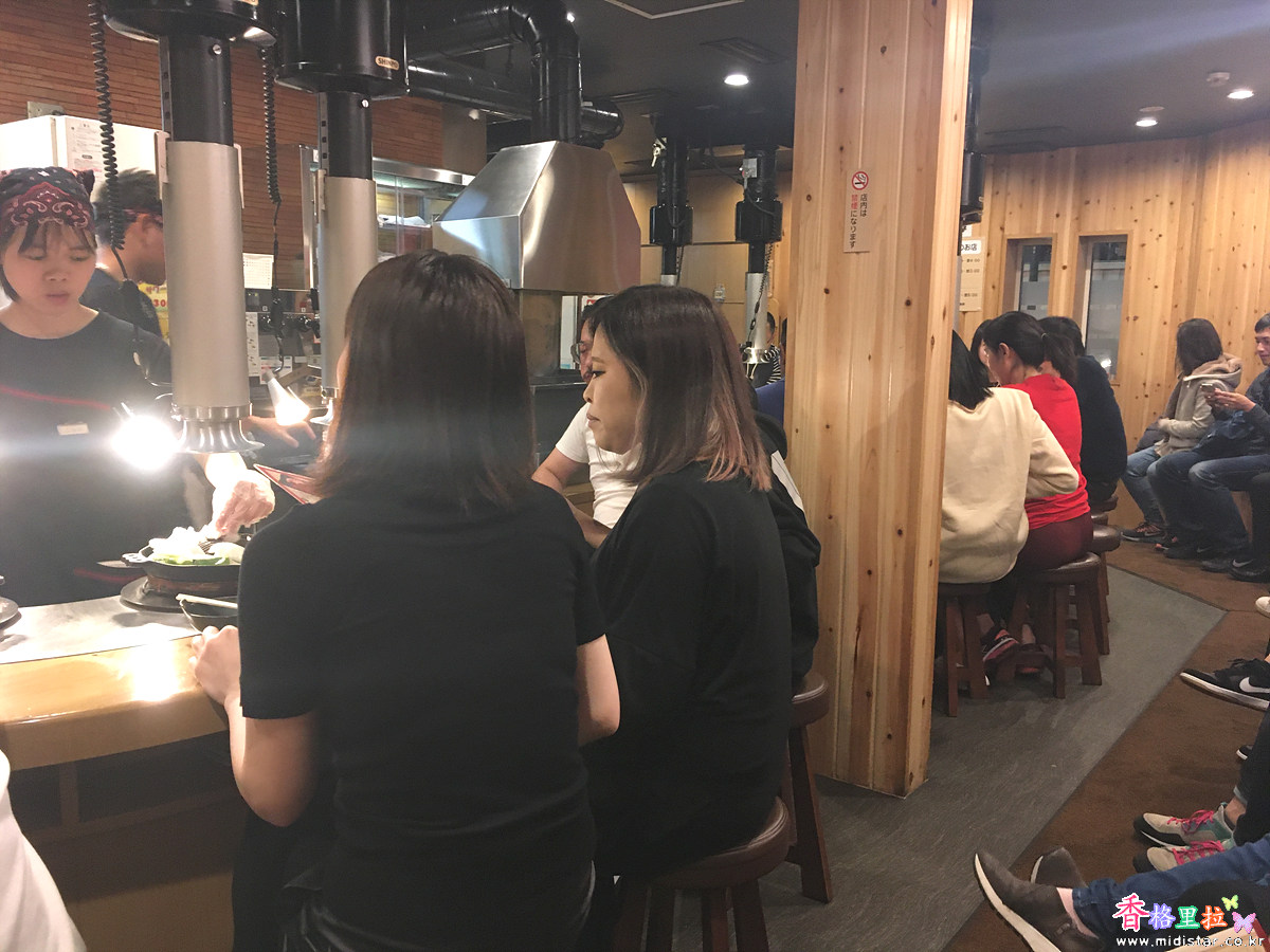 식당안에 들어서니 한 박자 늦게 도착했는지 테이블에는 한참 고기를 굽고 있고 'ㄴ' 자 대기의자엔 사람들이 죽 앉아서 대기를 하고 있었다. 고기를 구워먹는 시스템이라 한바퀴 회전하는 시간이 조금 긴편이다. 그래도 기다려서 먹는데 익숙한 일본 사람들이라 그런지 기다려서 먹고야 만다.