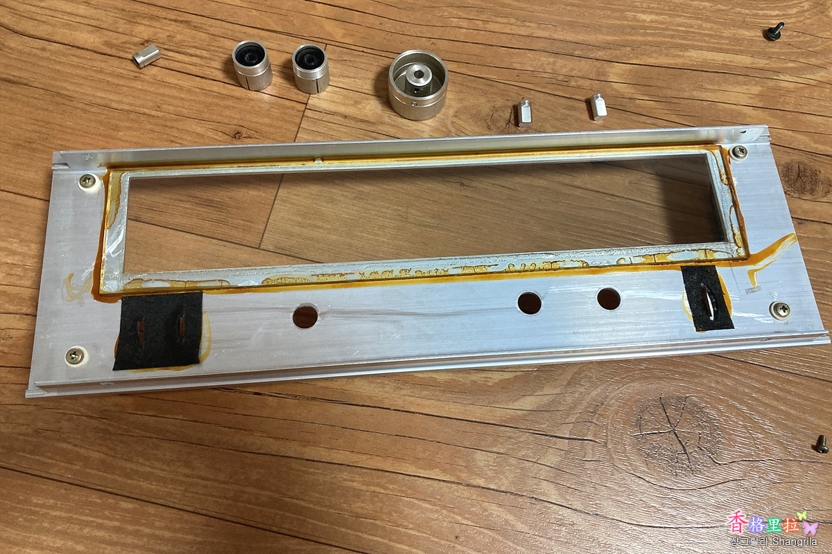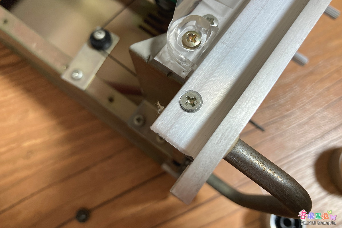 원래 있던 손잡이보다 약간 길어서 구멍에 나사가 잘 안들어가는데 알루미늄판을 조금 갈아내서 간격을 넓혀주면 된다.