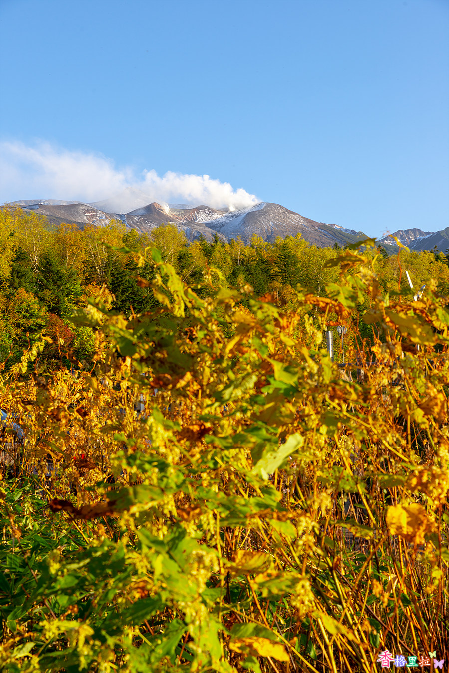 다이세쓰잔(大雪山)에서 흰 연기가 뭉게 뭉게 피어오르고 있다.