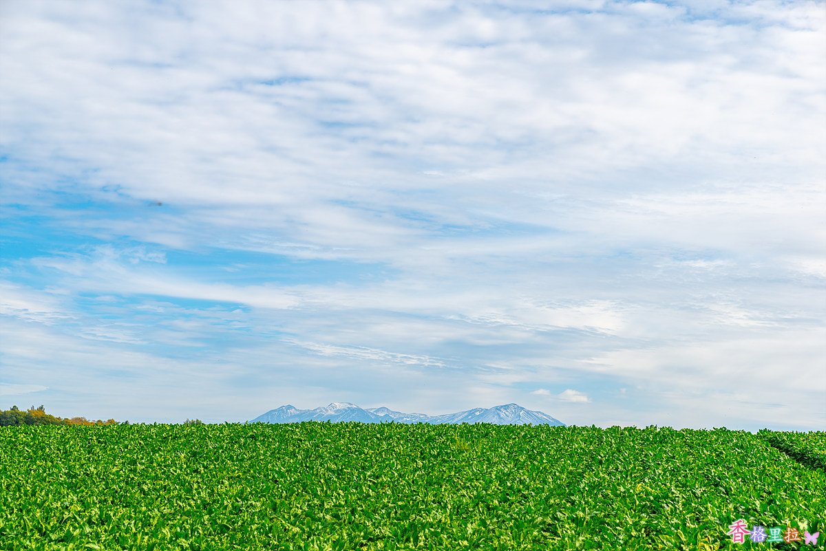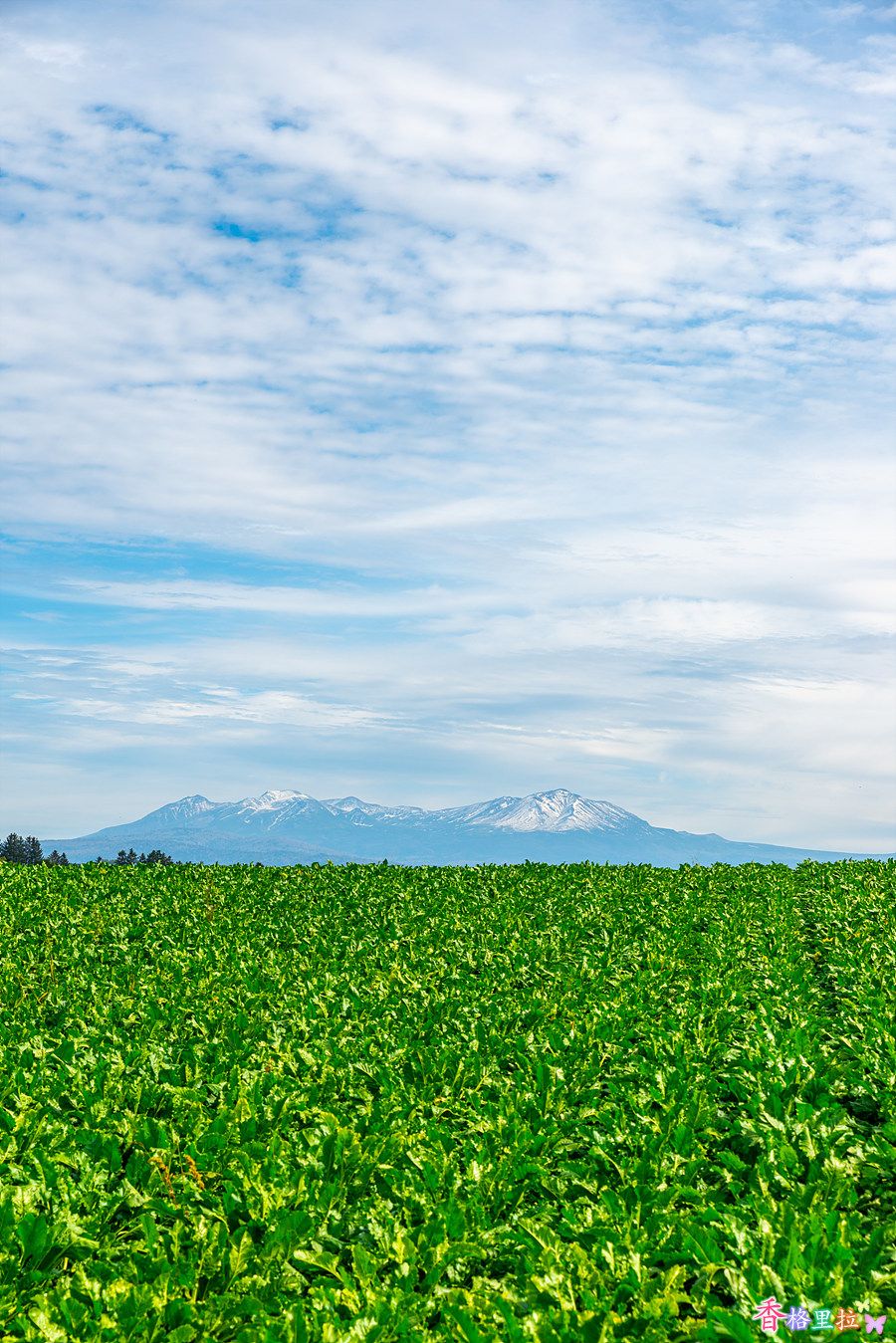 건너편 언덕 밭 위로 다이세쓰잔(大雪山)이 보인다.