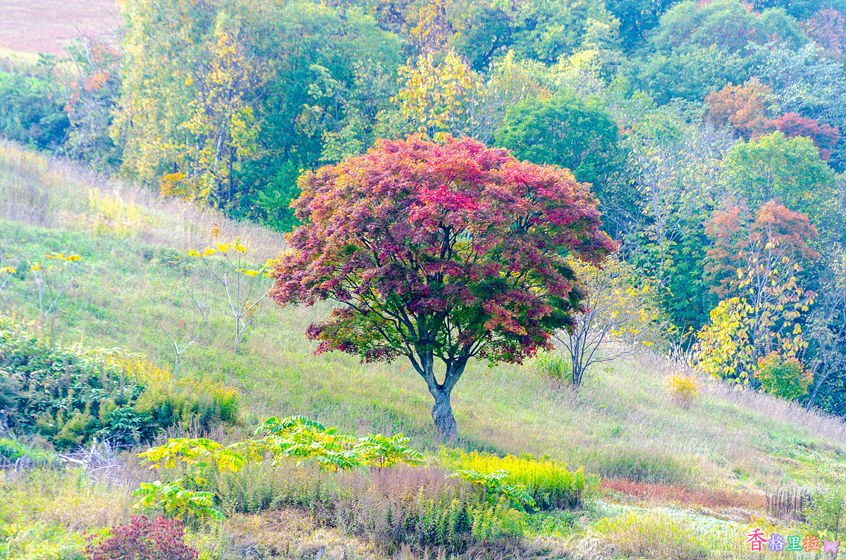 알록달록 색동옷을 입은 나무 한그루를 발견하고 급히 차를 세우고 그냥 차 안에서 한컷 담았다.
