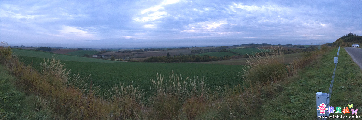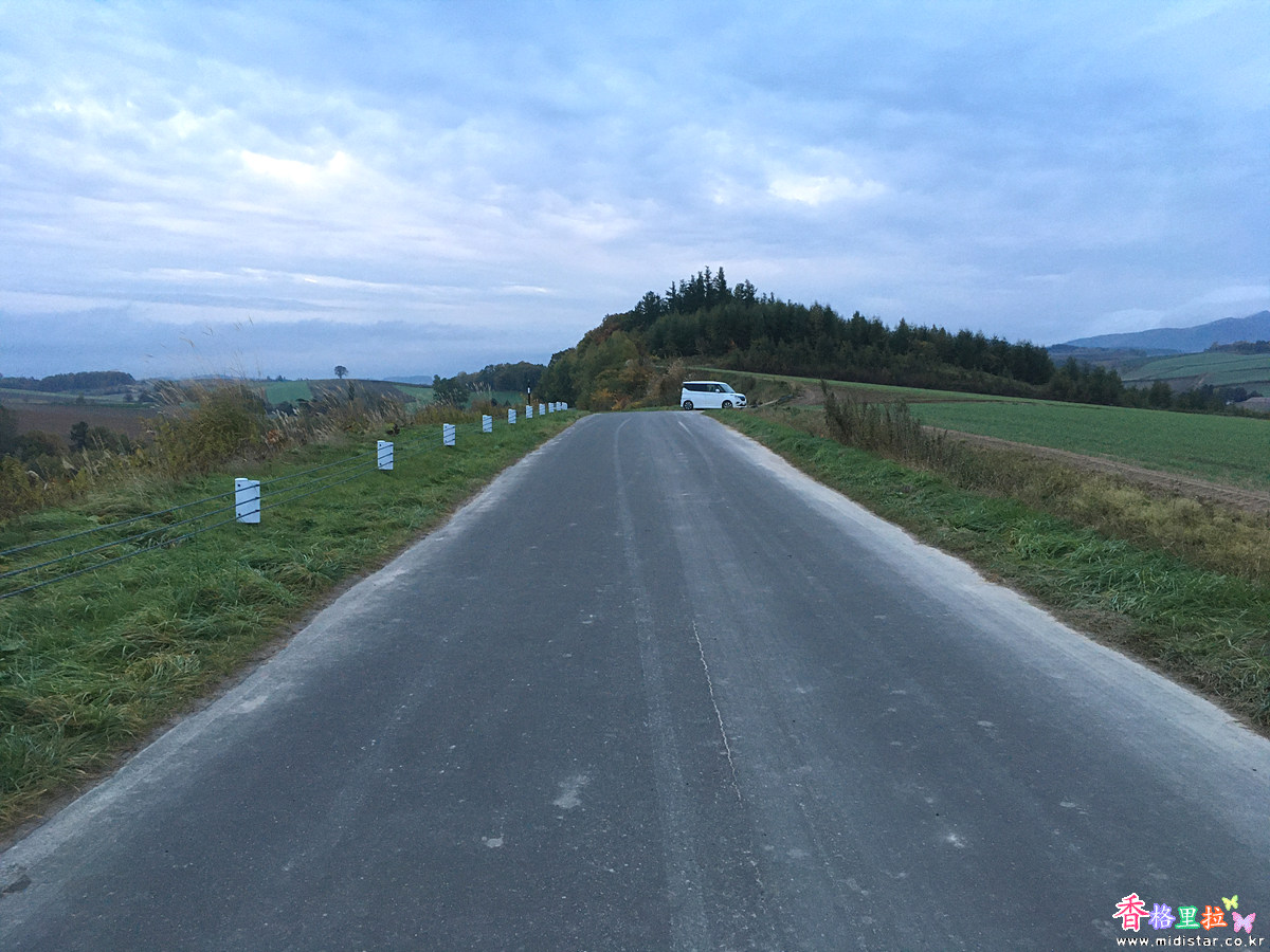 옅은 안개 낀 비에이 언덕에 아침햇살이 비치면서 아름다운 풍경이 펼쳐지는 곳이라는데... 아쉽다.