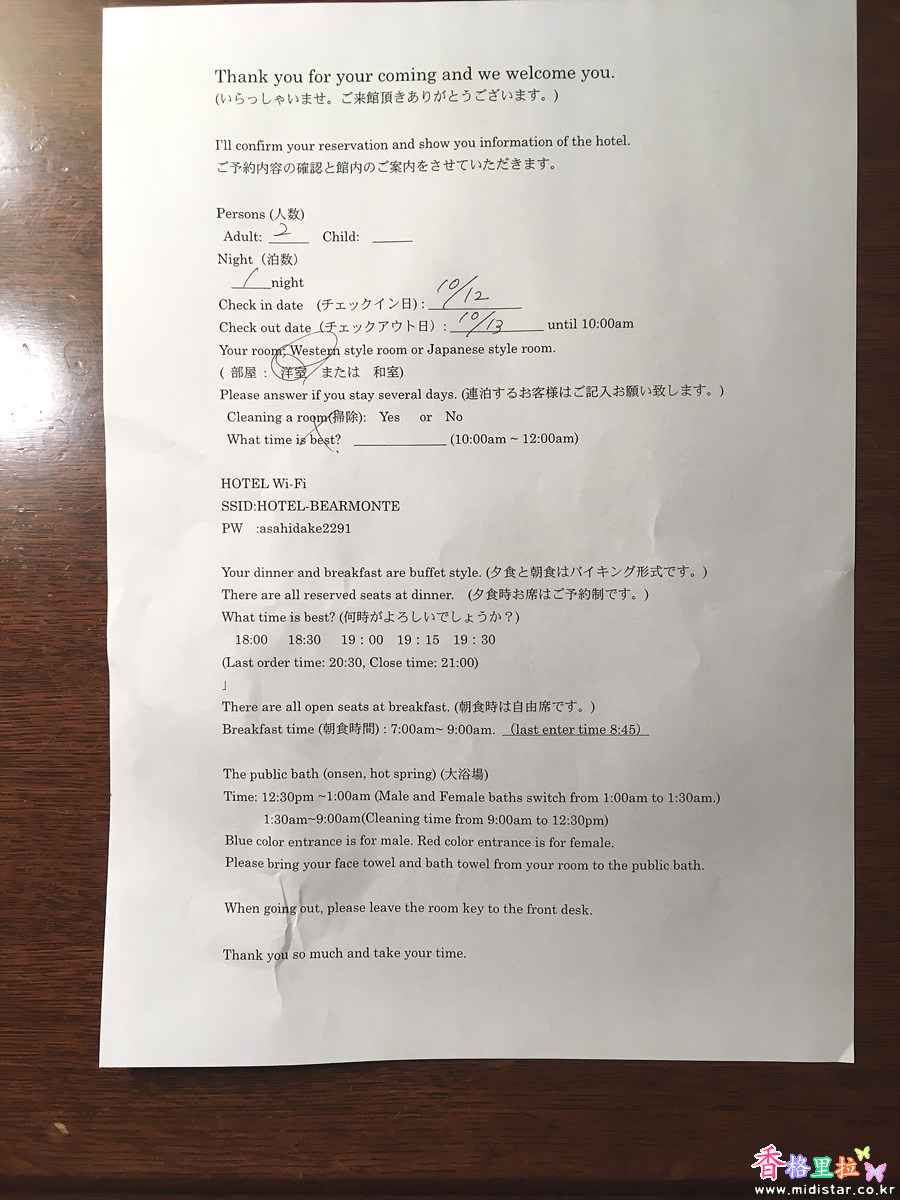 반대편으로 오기 위해 산을 반바퀴 돌아 2시간 20분 정도 걸려서 Hotel Bearmonte (旭岳温泉ホテルベアモンテ) 에 도착했다.