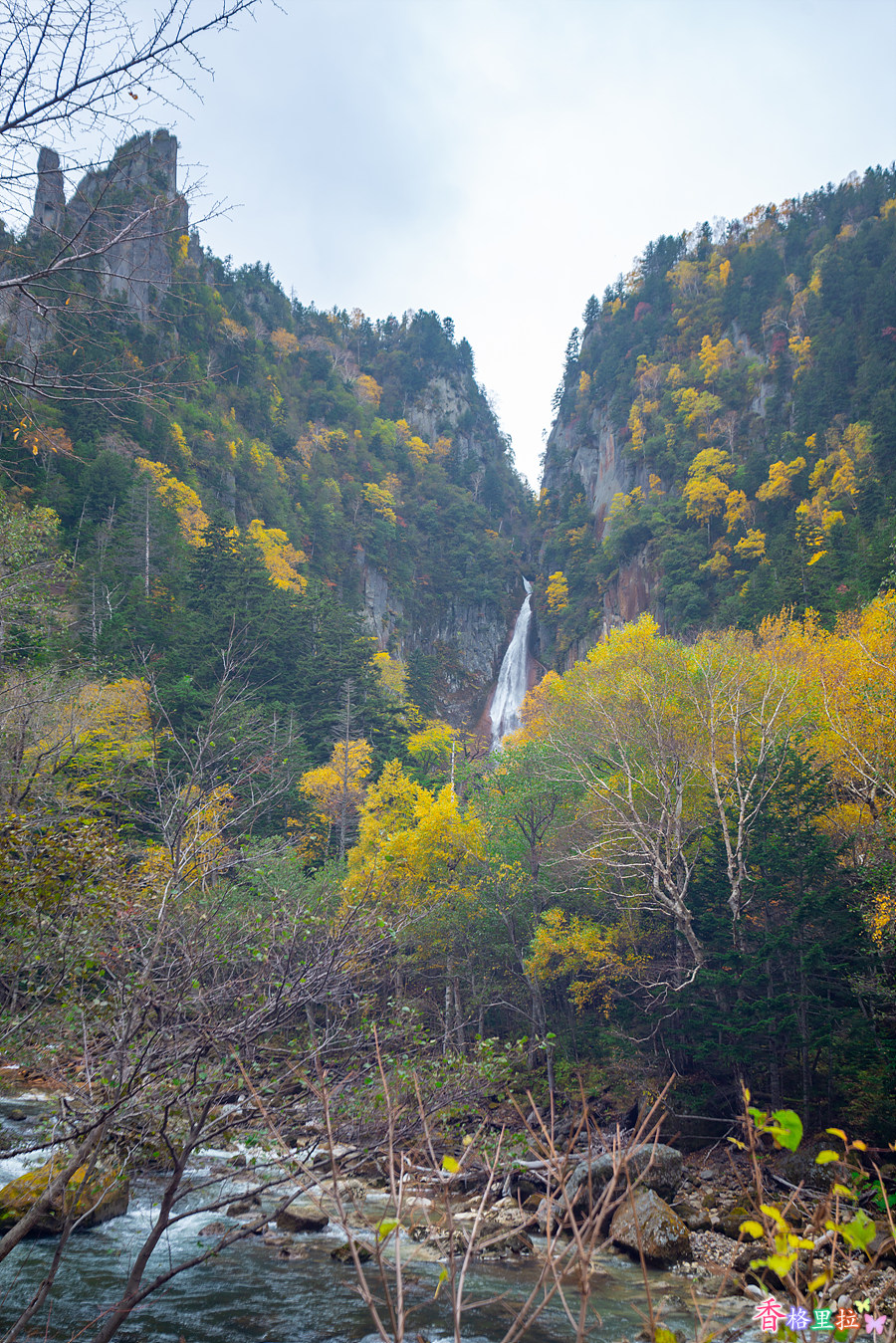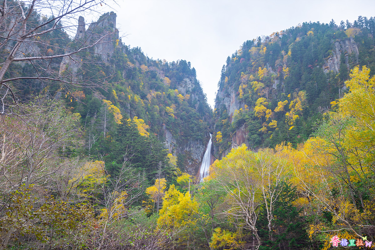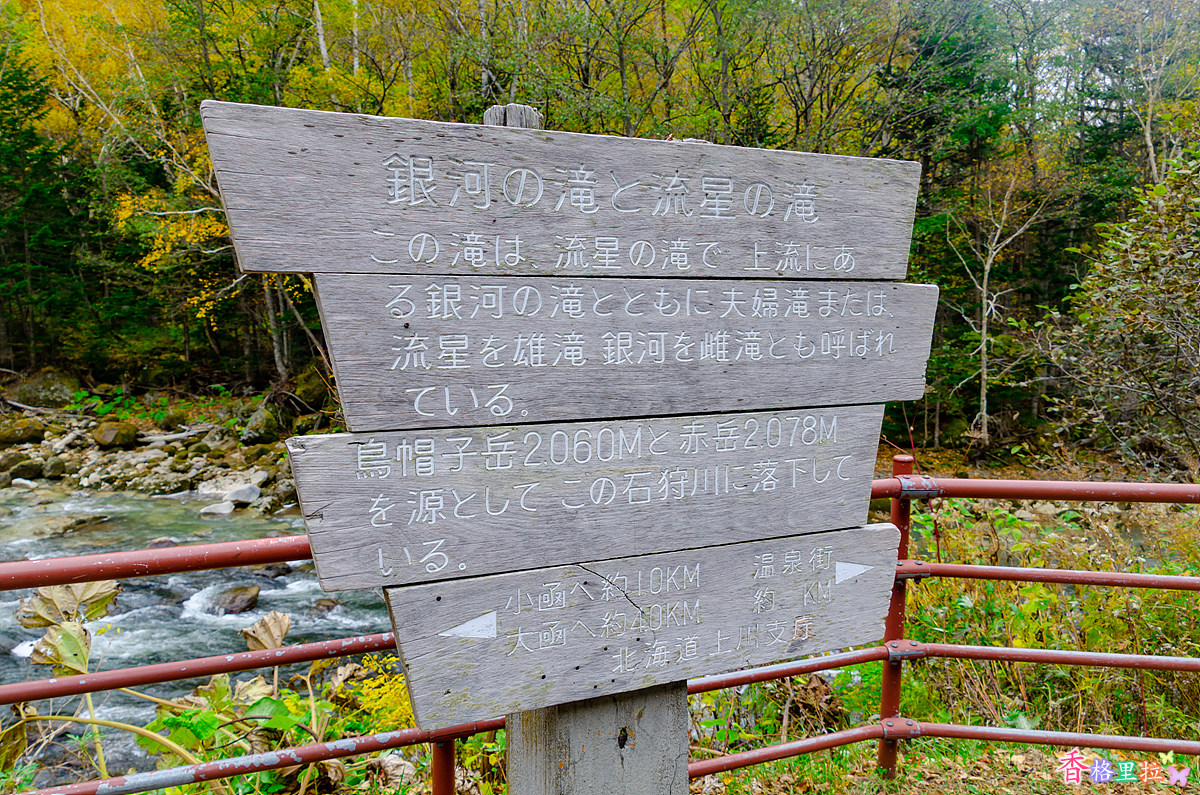 미쿠니전망대(三国峠展望台)를 떠나 다시 왔던 길로 되돌아가 다이세쓰잔(大雪山)의 반대편으로 가는 길에 중간에 있는 은하폭포(銀河の滝; 긴가노다키)와 유성폭포(流星の滝;류세이노다키)를 둘러보고 가기로 했는데 포켓 와이파이도 연결이 안되고 네비게이션에 맵코드를 입력해도 정확하게 안나와서 그냥 계속 달리는 중에 표지판이 보여서 다시 차를 되돌렸다.