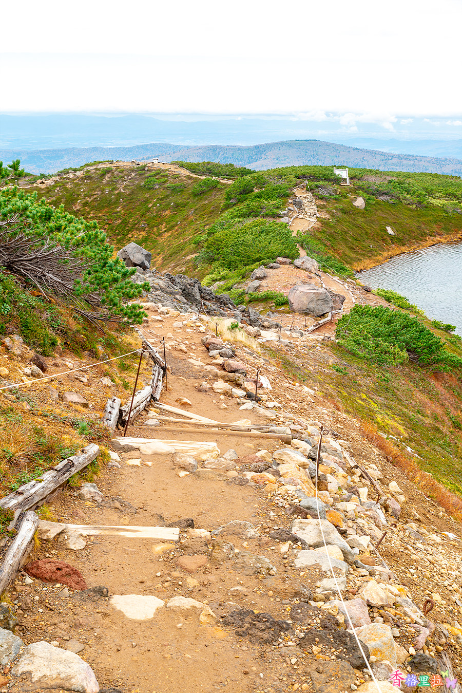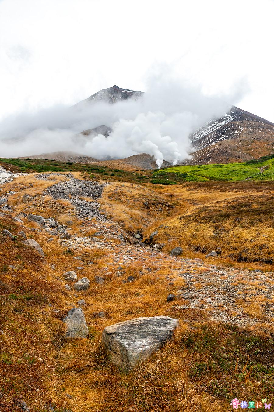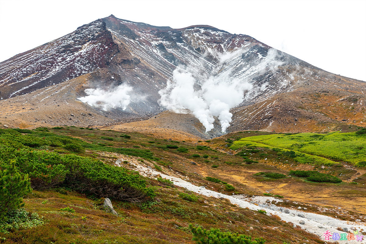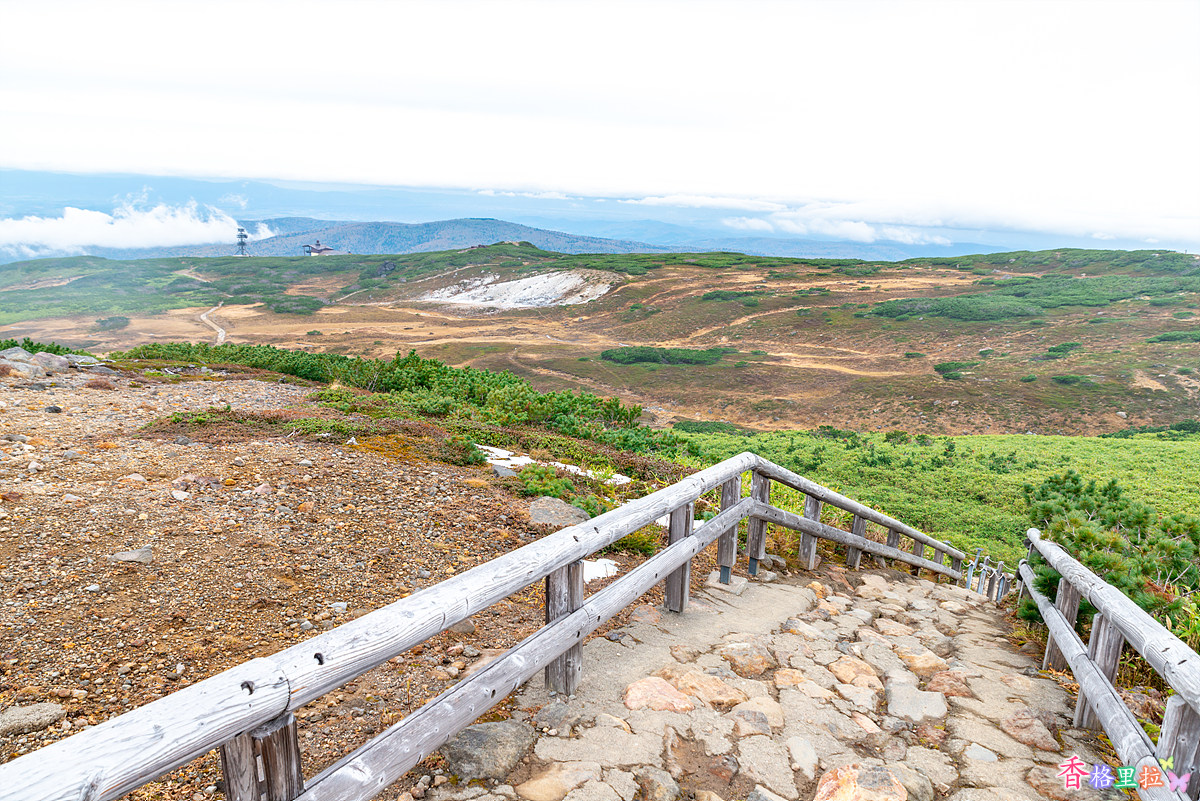 로프웨이 종점 수가타미(姿見) 역을 나서니 아사히다케(旭岳)가 눈앞에 펼쳐진다. 해발고도가 높아서 큰 나무들은 없다.