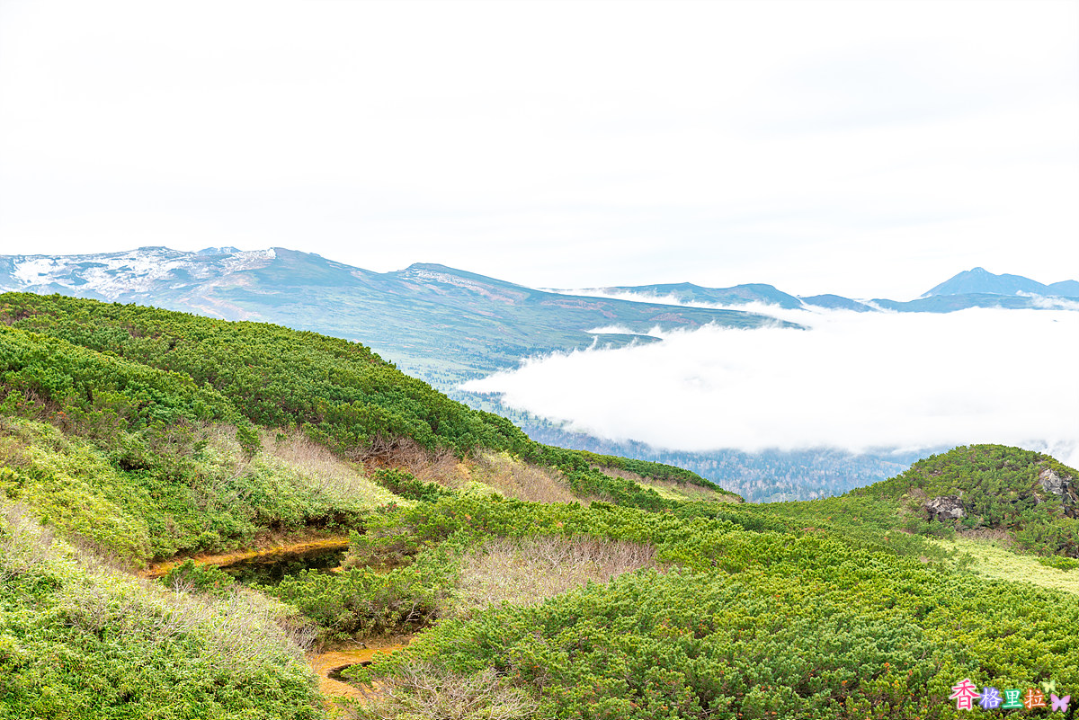 구름이 끼어 아침 빛이 안 좋아 색감이 별로였지만 확 트인 다이세스잔(大雪山) 아사히다케(旭岳) 에서 내려다보는 전망만으로도 만족한 시간이었다.