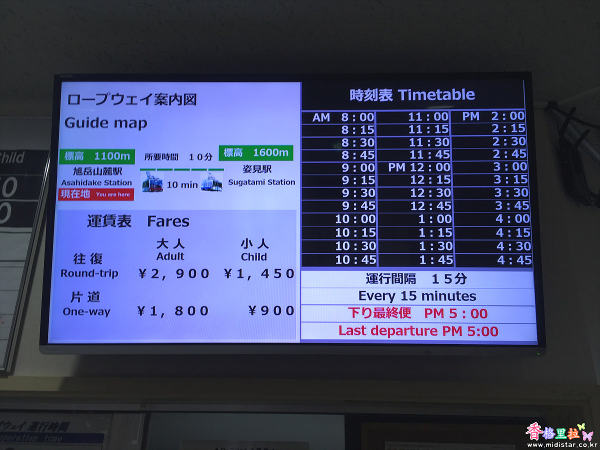 ▲다이세스잔(大雪山) 아사히다케(旭岳) 로프웨이(Ropeway) 운행 시간표