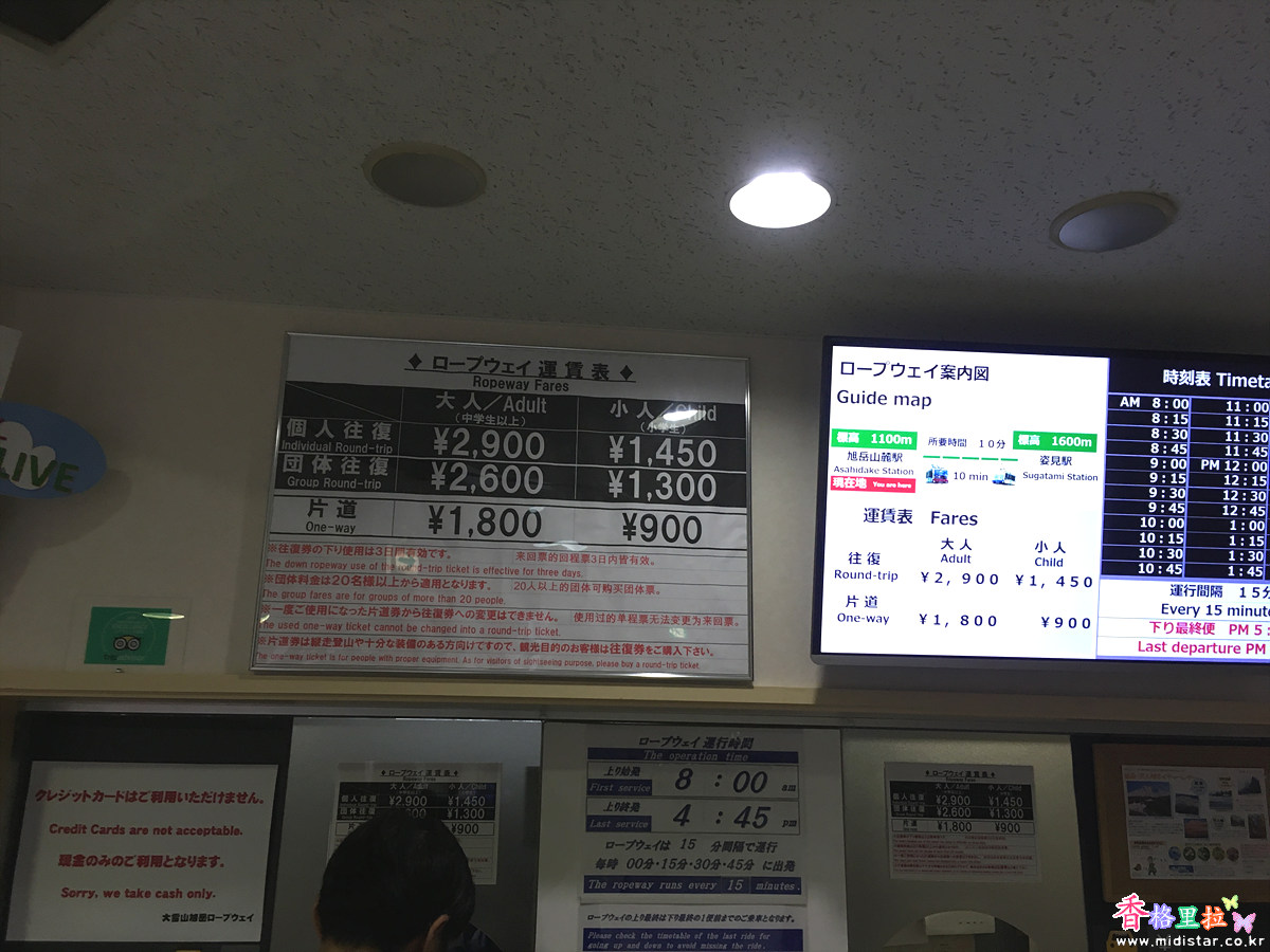 로프웨이(Ropeway) 탑승권은 왕복 2,900엔, 편도 1,800엔으로 상당히 비싼 편이었다.