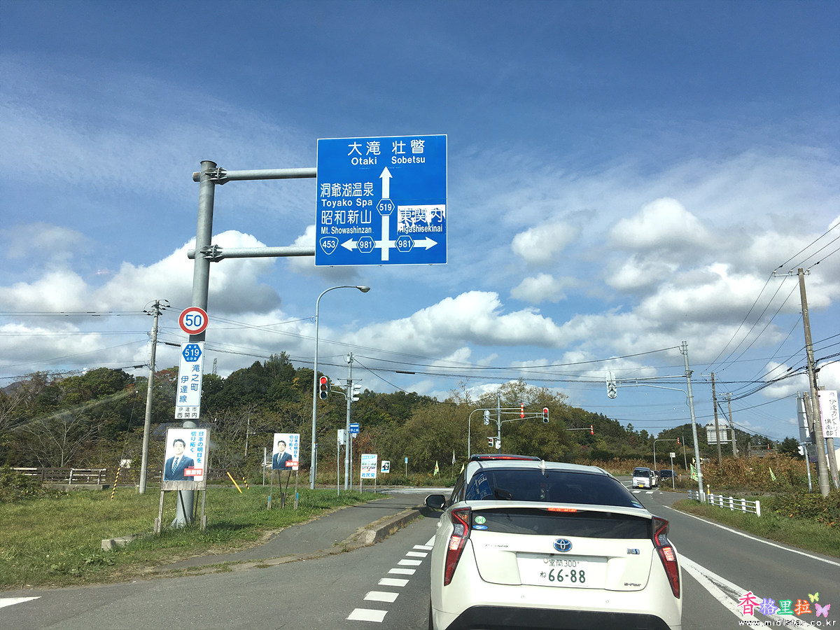 가는 길에 폭포가 하나 있다고 맵코드를 찍어 놓고 왔는데 맵코드가 정확하지 않은건지 잠시 헤메다가 폭포를 발견하긴 했는데 폭포 아래가 아니고 윗 부분이다. 폭포 (壮瞥魚止めの滝 ) 아랫쪽으로 접근하려면 차를 돌려 다시 마을쪽으로 가야되는데 해가 중천이라 폭포 사진찍을 시간대가 아닌것 같아 그냥 가기로 했다.
