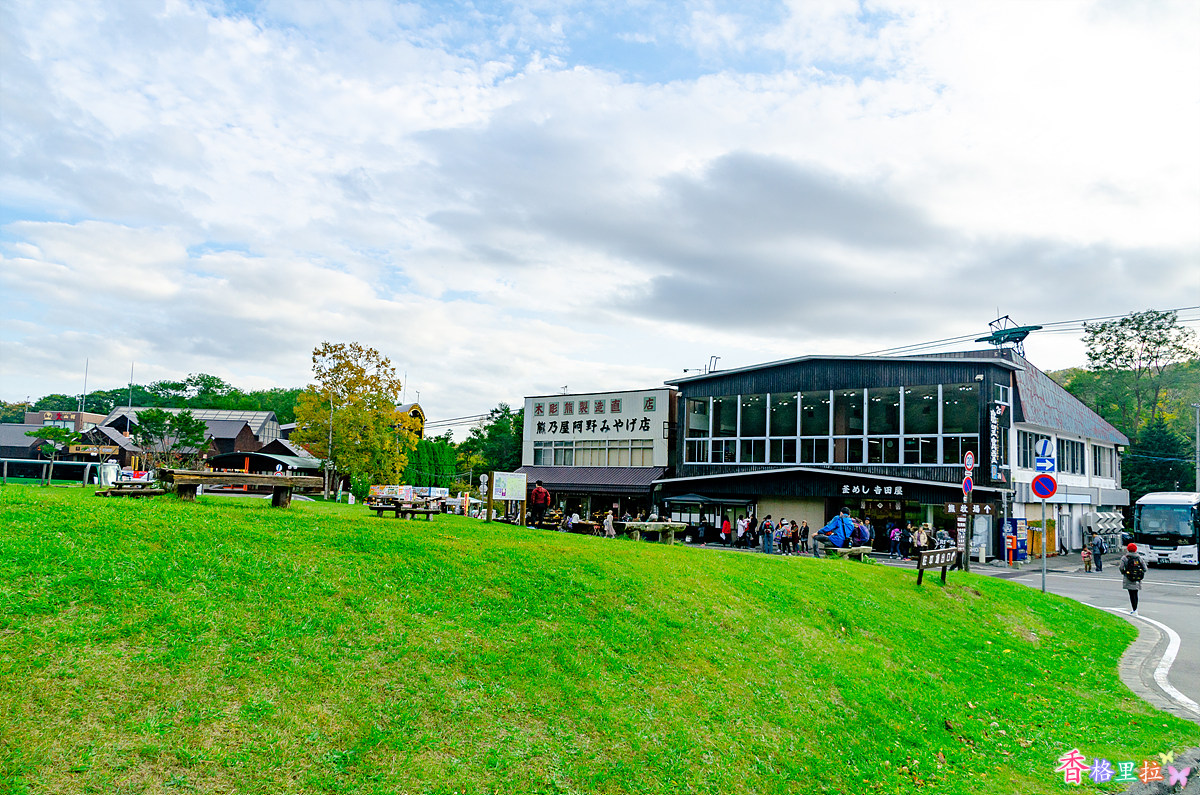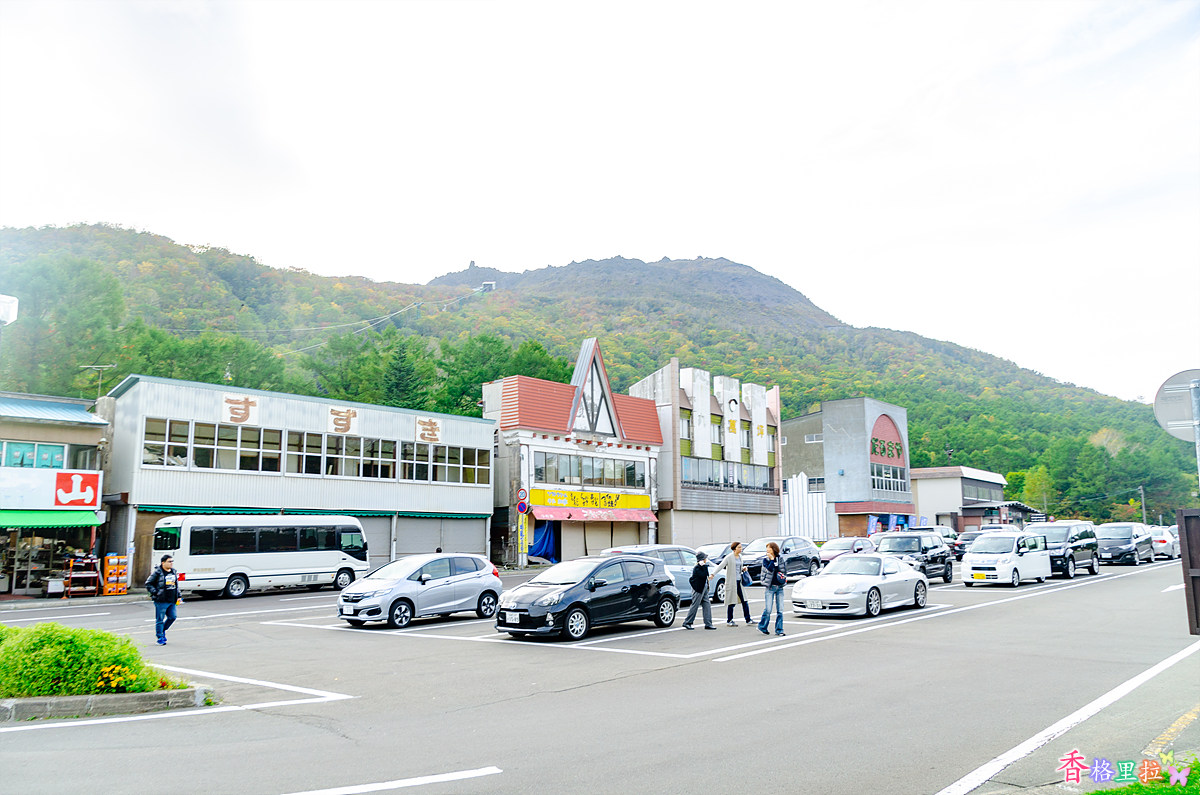로프웨이를 타고 우수잔(有珠山)에 올라 전망을 내려다 보기로 했다. 주차장(유료)에 주차하고 보니 어째 관광객은 많은데 앞의 상가들은 썰렁하기만 하다.