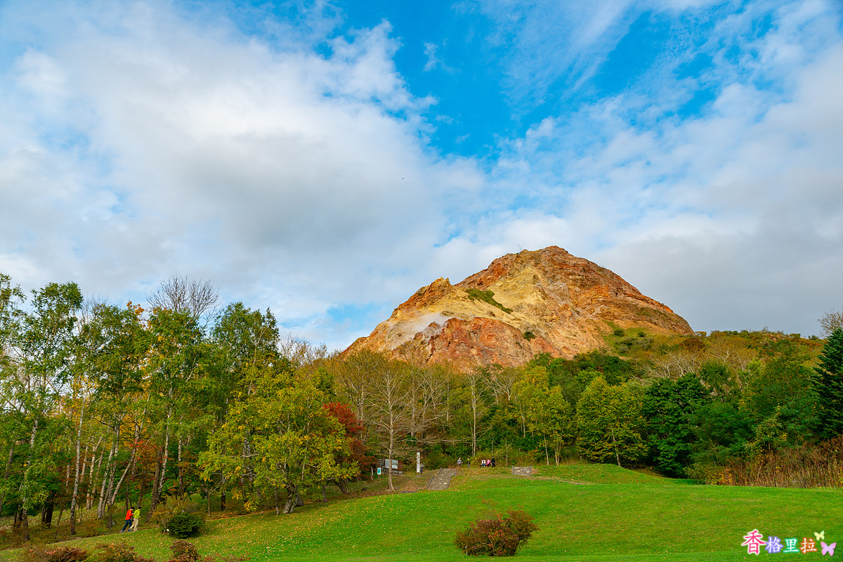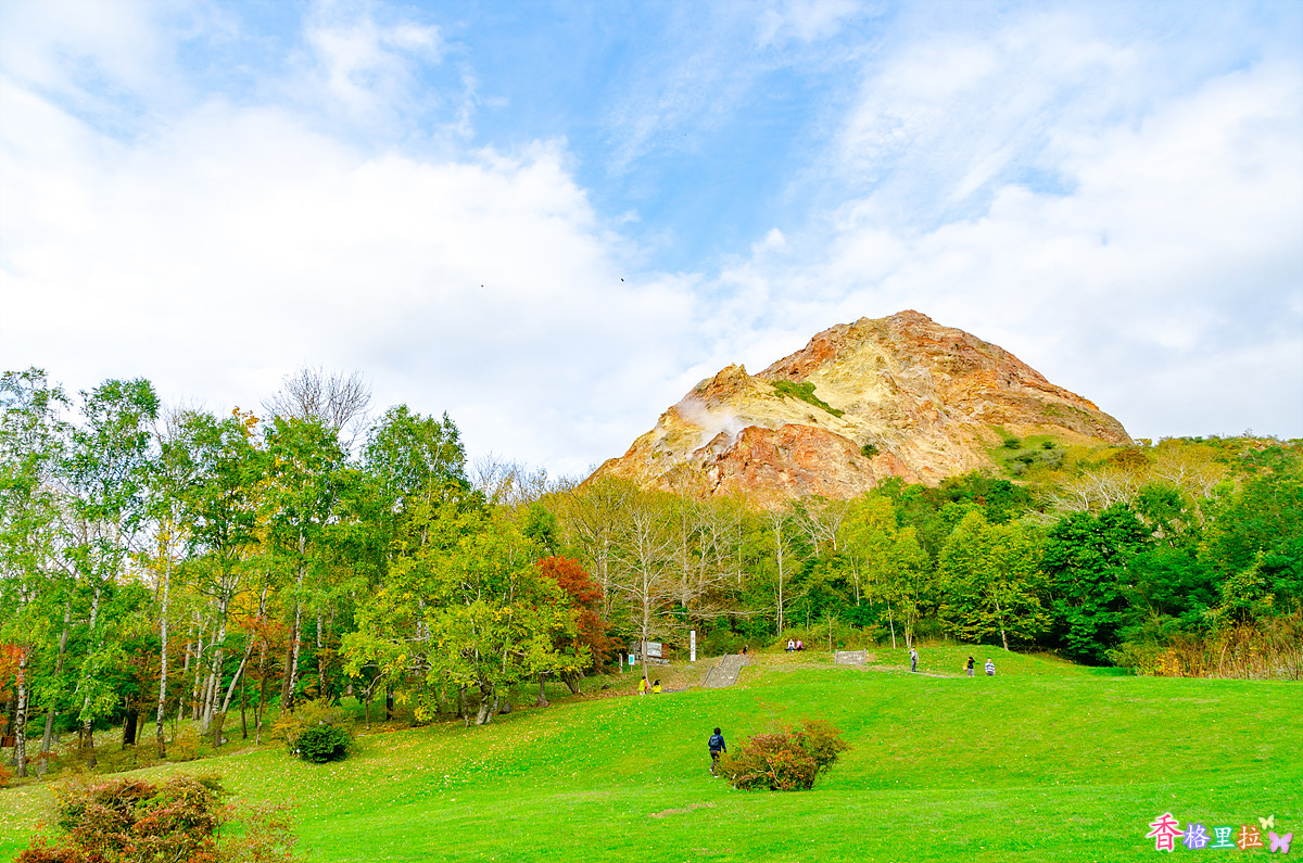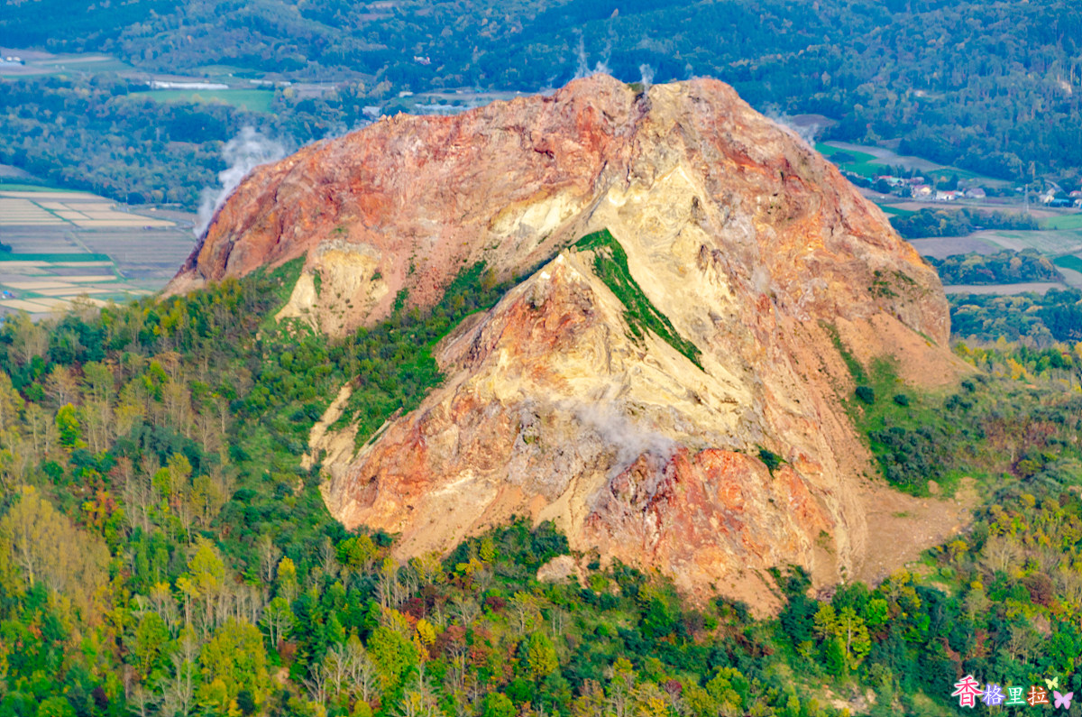 우수잔(有珠山) 아래쪽은 녹색이 더 많다.