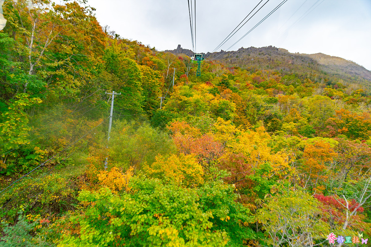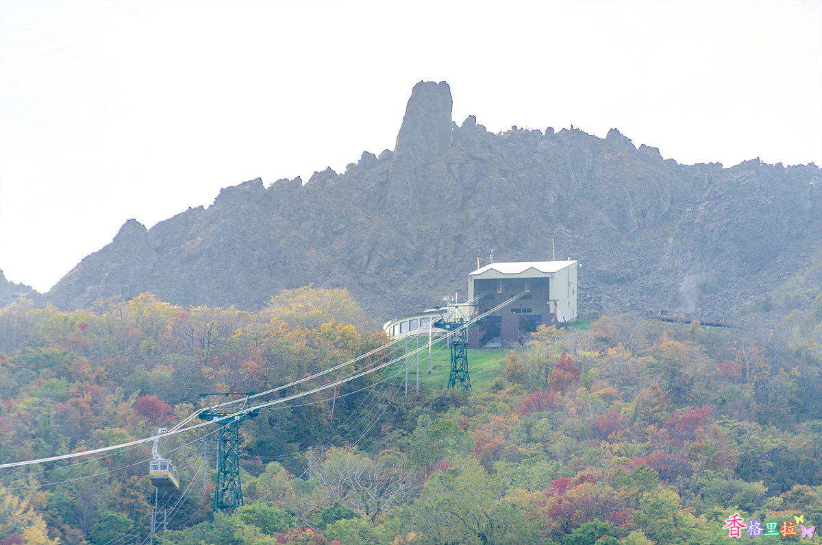 로프웨이에 올라 우수잔(有珠山)으로 오르기 시작한다.