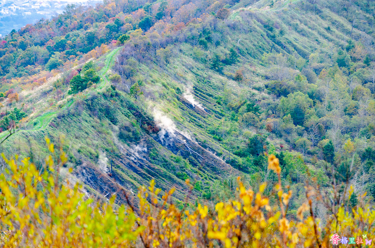 우수잔(有珠山) 위쪽은 제법 단풍에 물들었다.
