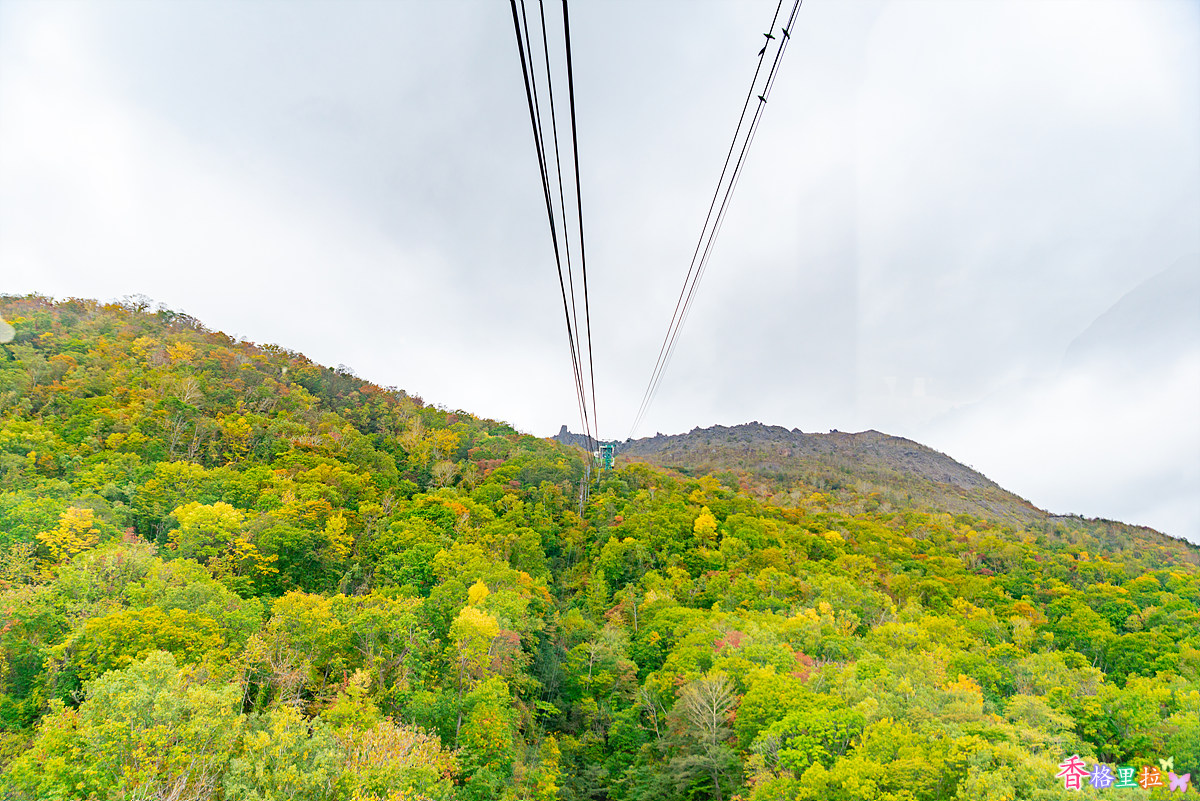 로프웨이에 올라 우수잔(有珠山)으로 오르기 시작한다.
