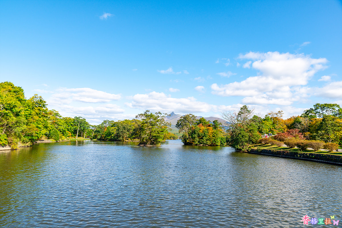 공원 앞에 있는 주차장(유료)에 주차 후 공원(무료)에 들어가니 호수가 있고 앞에는 거대한 고마다케 (駒ヶ岳) 산이 버티고 서있다.