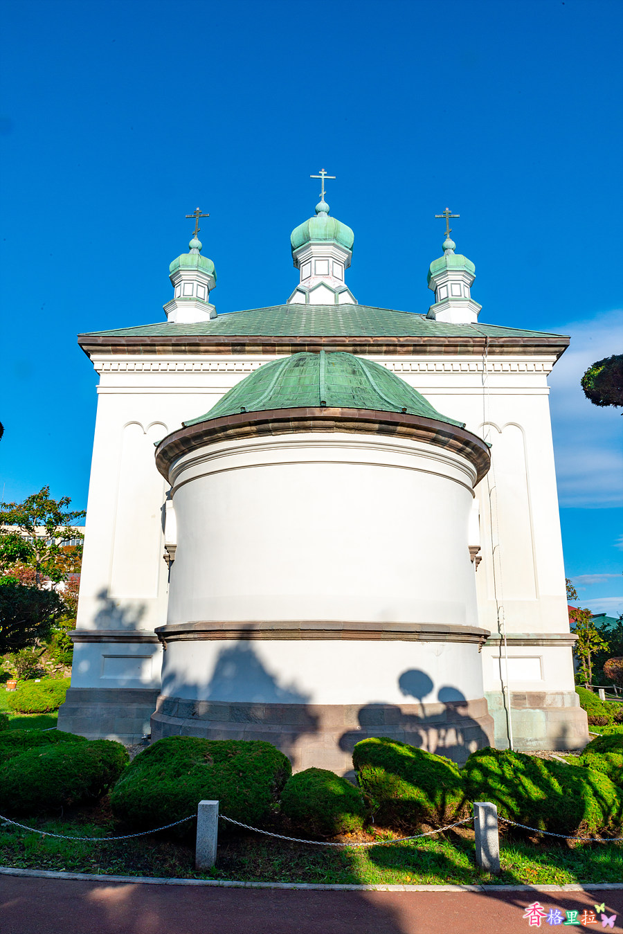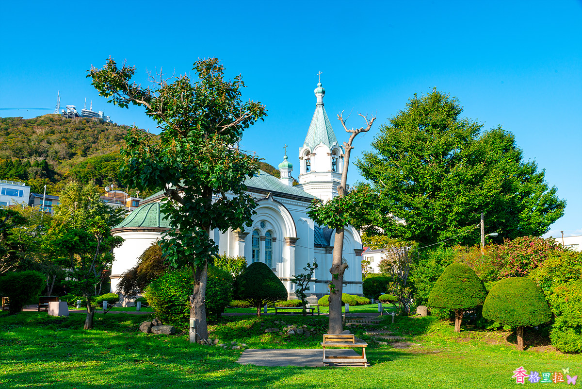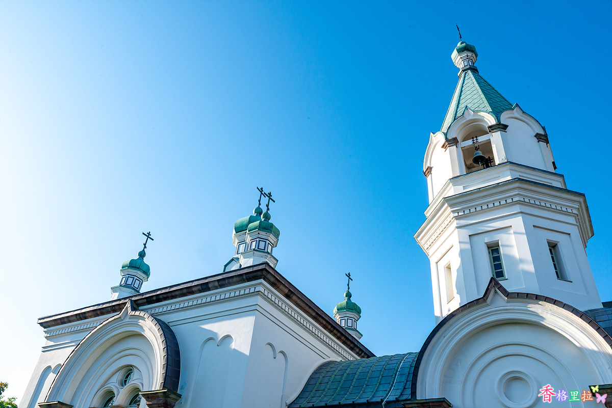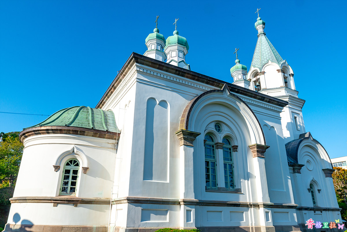 하코다테(函館) 관광엽서에도 있는 하코다테 하리스토스 정교회(函館ハリストス正教会)는 흰색의 단순한 색조와 에메랄드빛 지붕이 잘 어울리는 건축물이다.