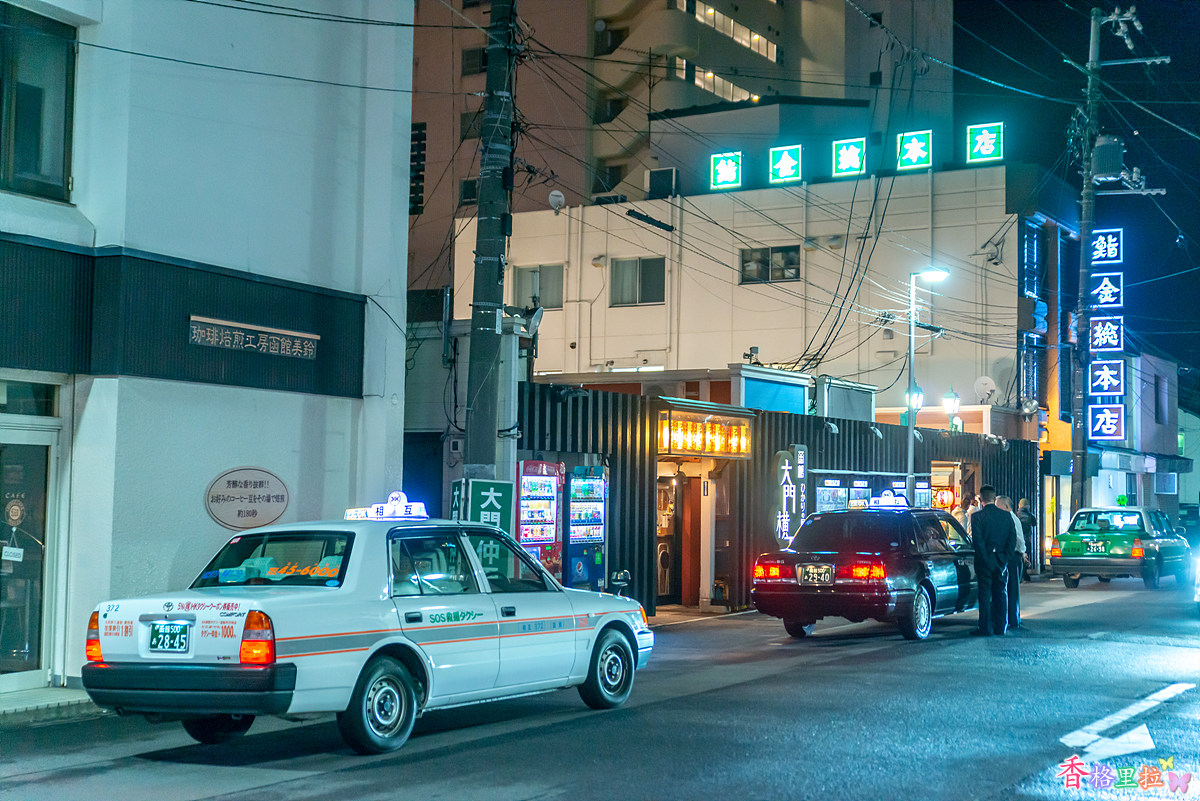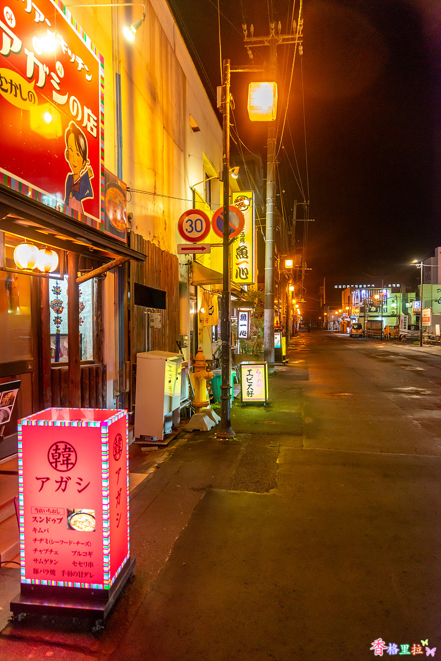하코다테(函館) 밤거리에 거의 사람 통행이 없다.