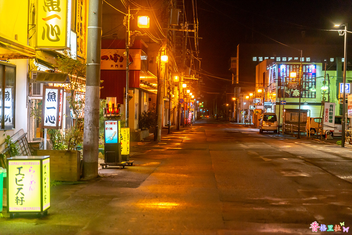 하코다테(函館) 밤거리에 거의 사람 통행이 없다.