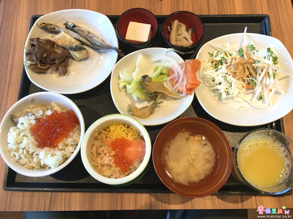 일찌감치 Dormy Inn Premium Otaru 호텔 식당에서 뷔페식으로 차려진 아침 식사를 챙겨 먹었는데 제법 먹을게 많아서 만족했다.